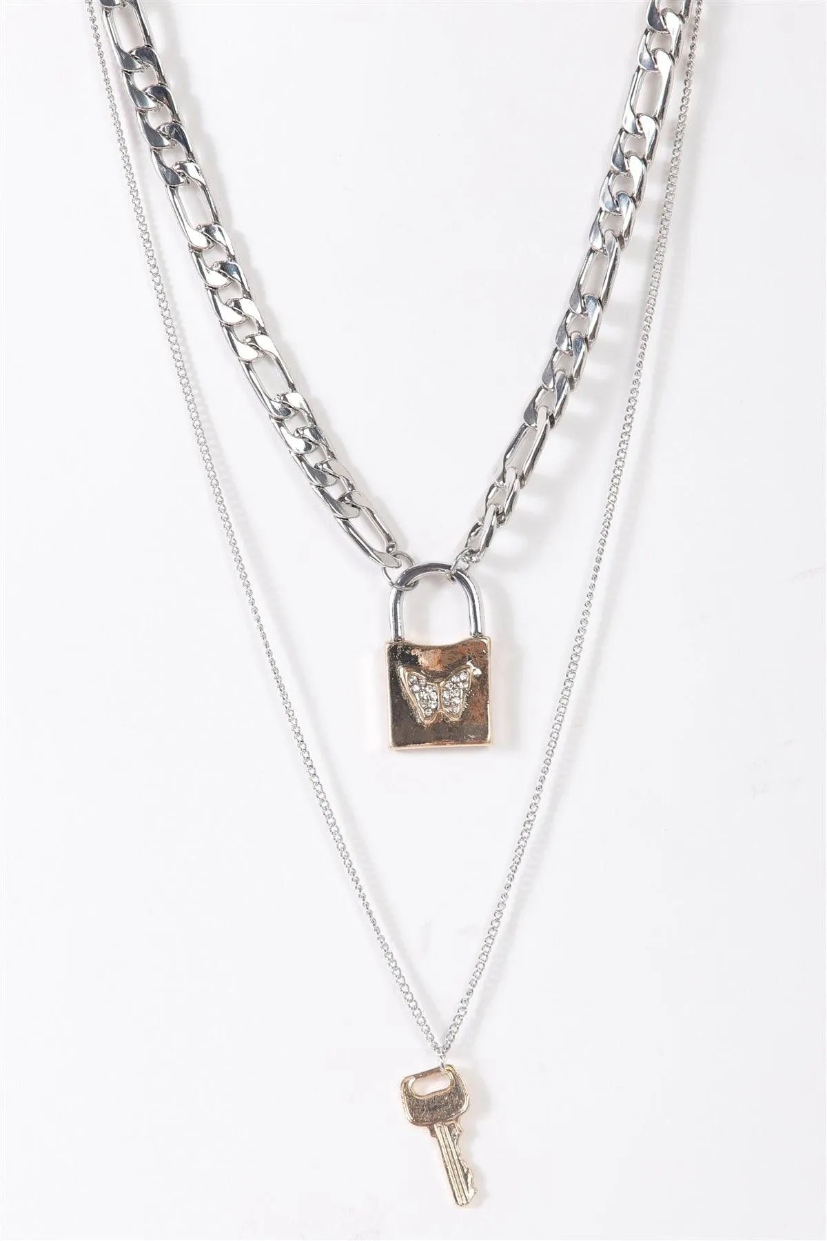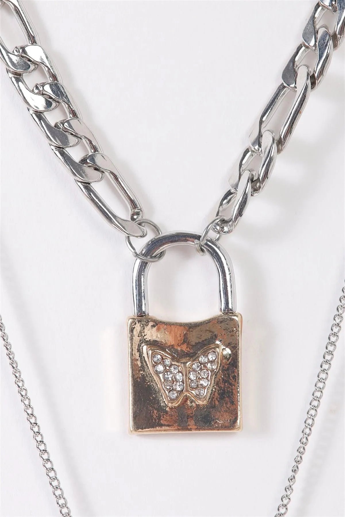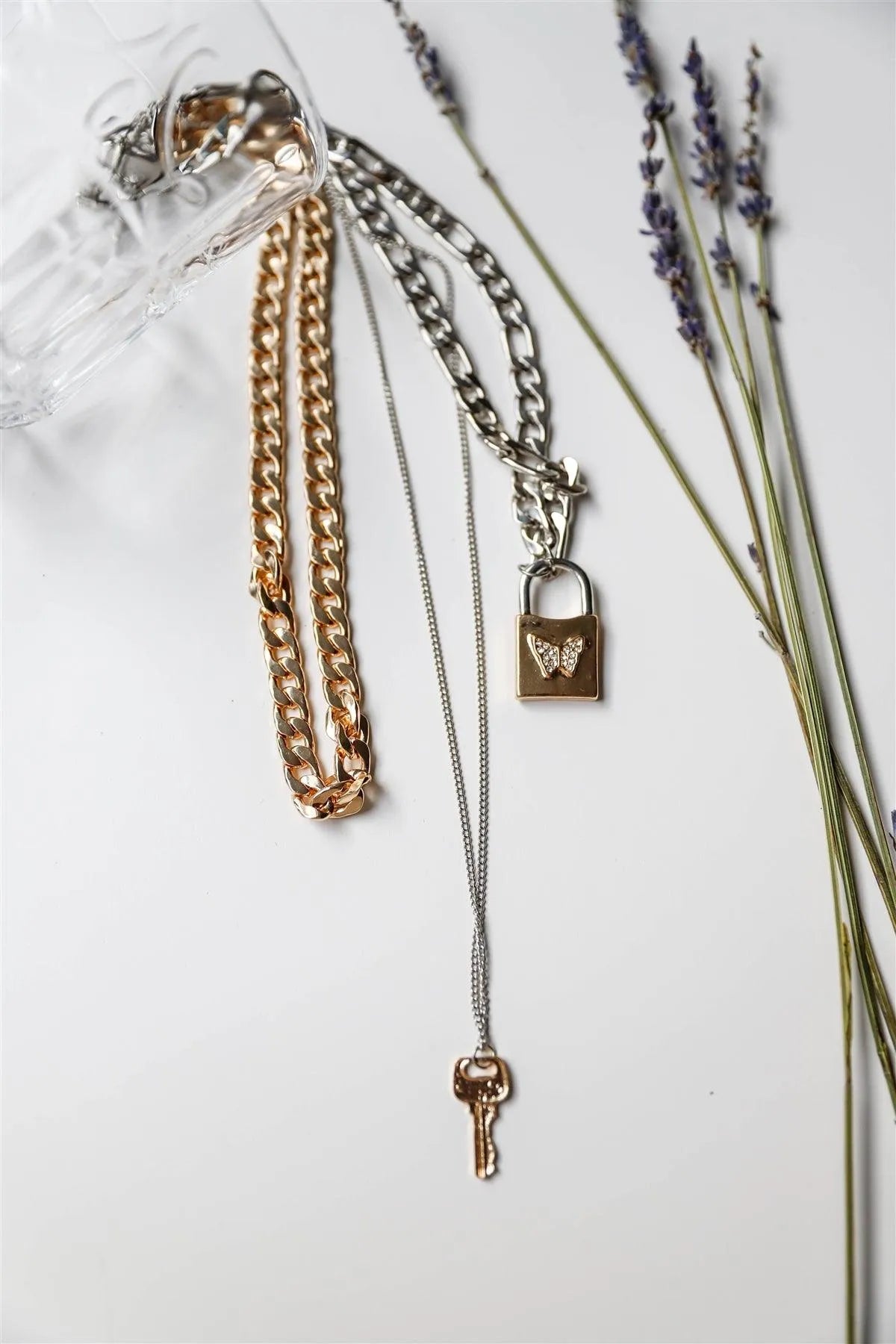 Link Chains Padlock Butterfly Key Pendants Necklace