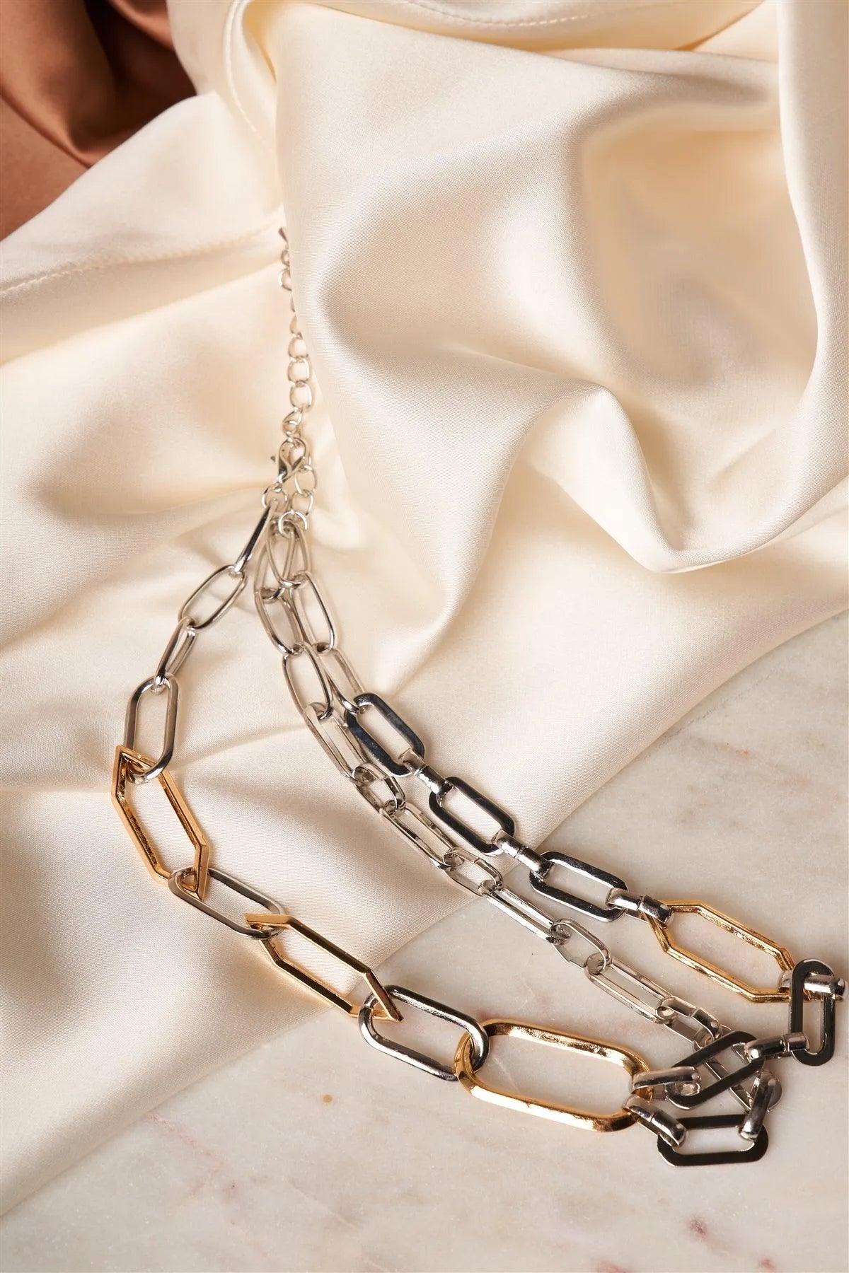 Silver Gold Unique Chain Link Choker Necklace /6 pieces