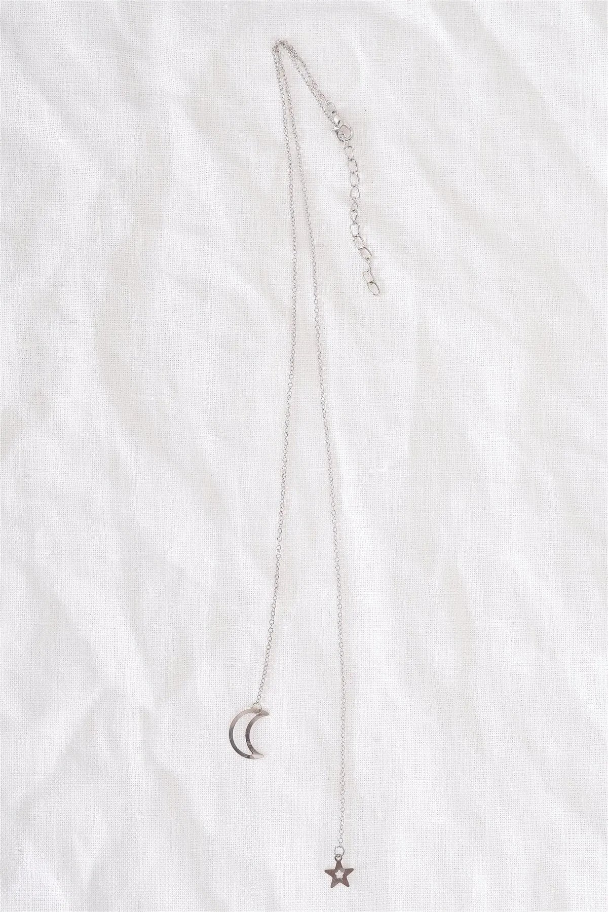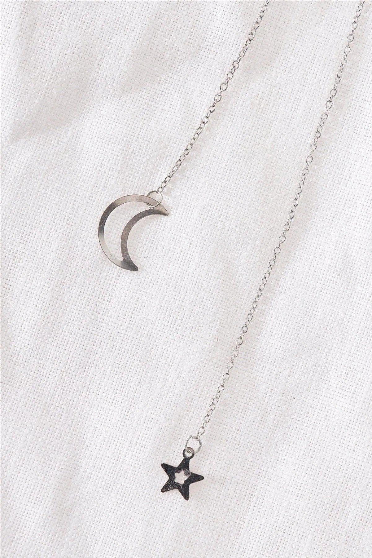 Silver Moon & Star Chain Open Necklace