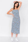 Sky Blue Open Back Boho Floral Print Midi Dress /4-2-1