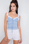 Sky Blue & White Plaid V-Neck Eyelet Ruffle Trim Chic Top /4-2-1