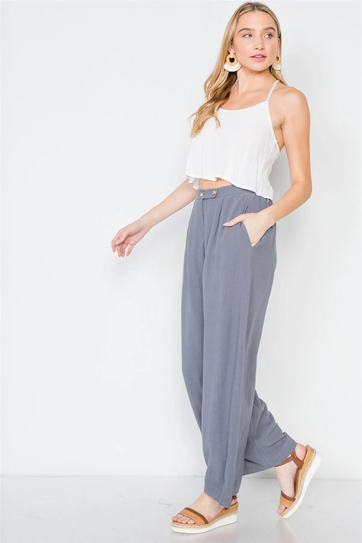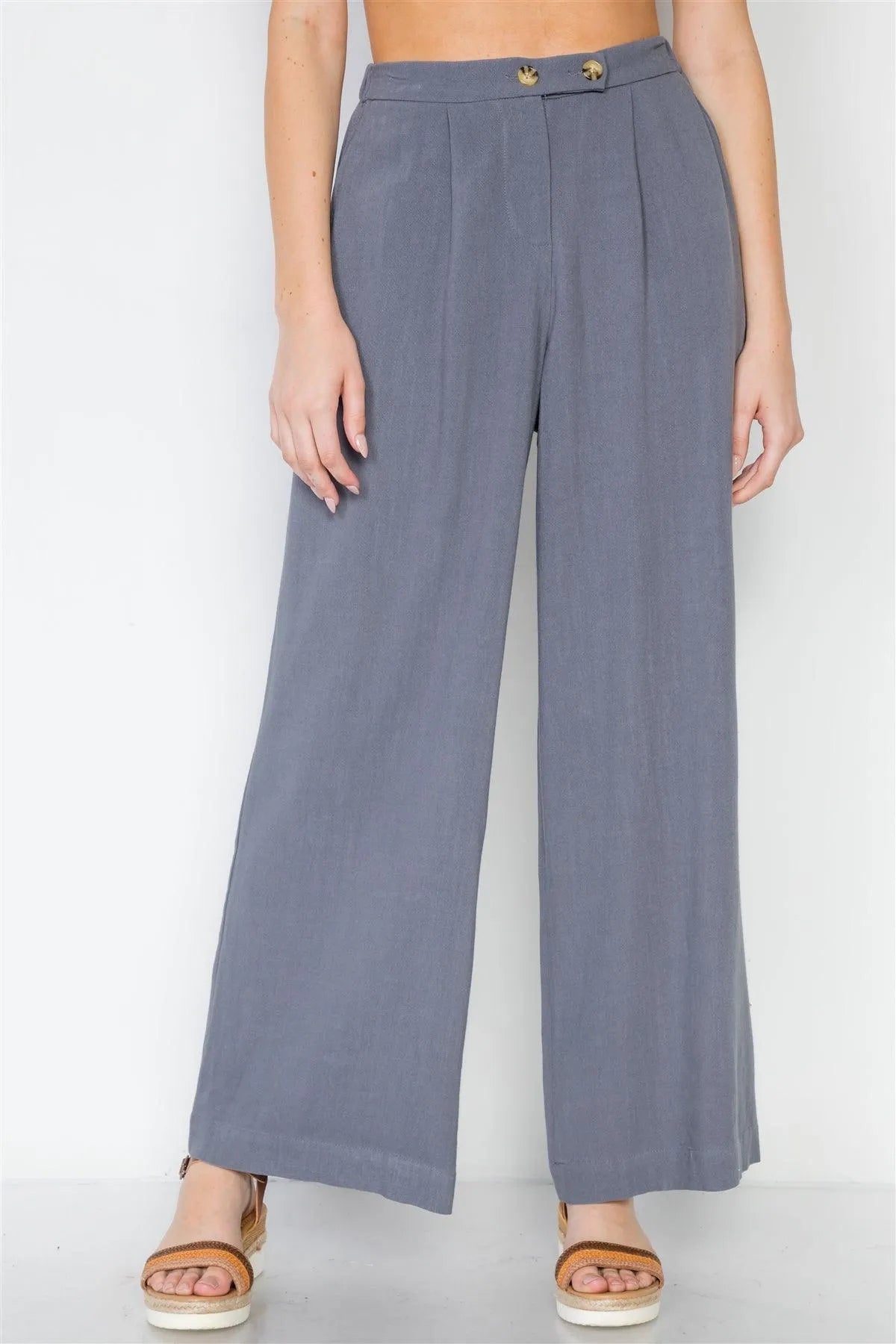 Pant features: double button zip-fly closure, elasticized back, side pockets, wide leg, no stretch, unlinedModel is 5'8 wearing a size Small (Waist: 24", Bust: 32B, Hips: 34")Size Small Top Measurements: Length: 41", Waist: 26"True to size