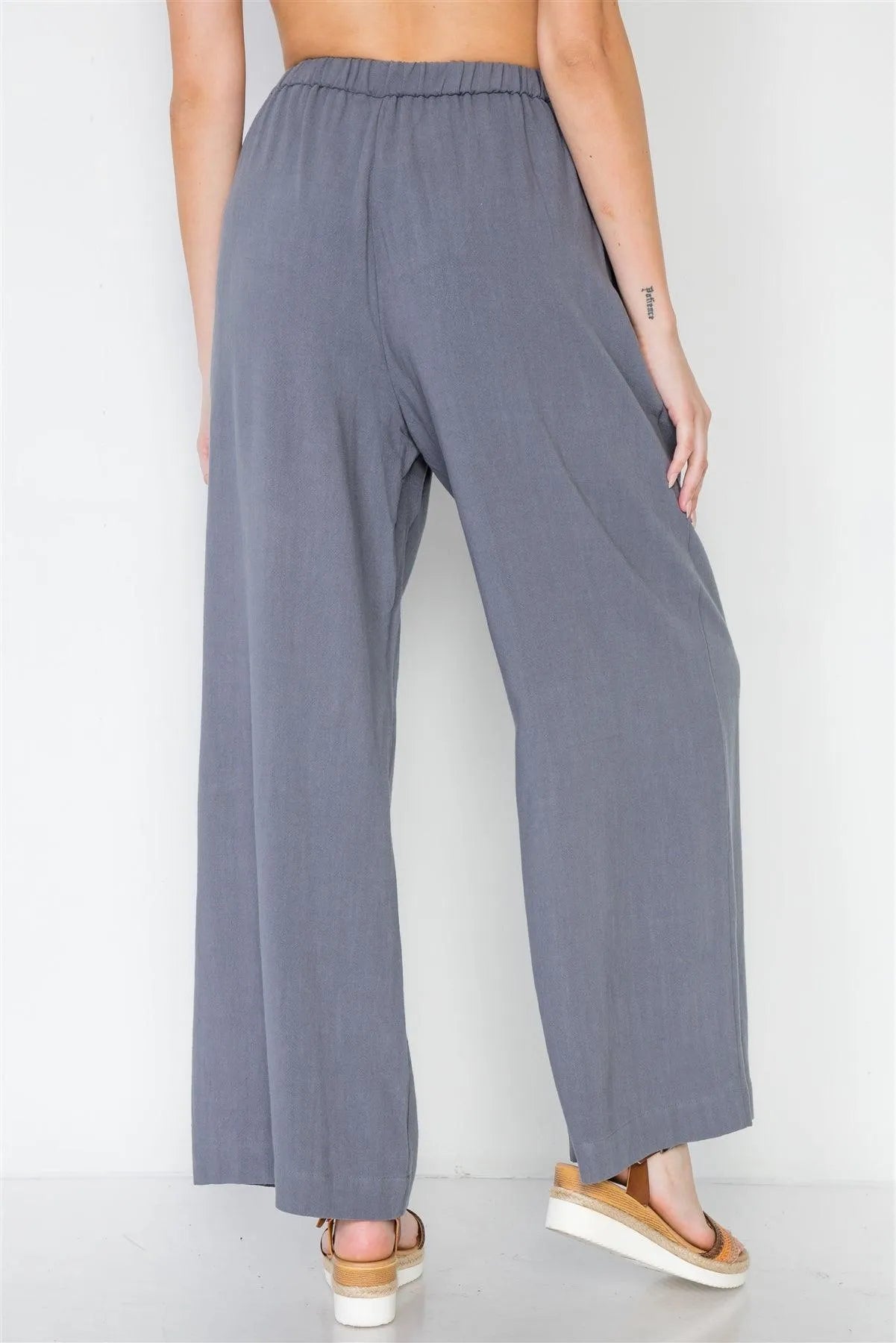 Soft Drawstring Wide Leg Pants Relaxed Fit Elastic Waist Comfortable Boutique PantsVendor:White Birch