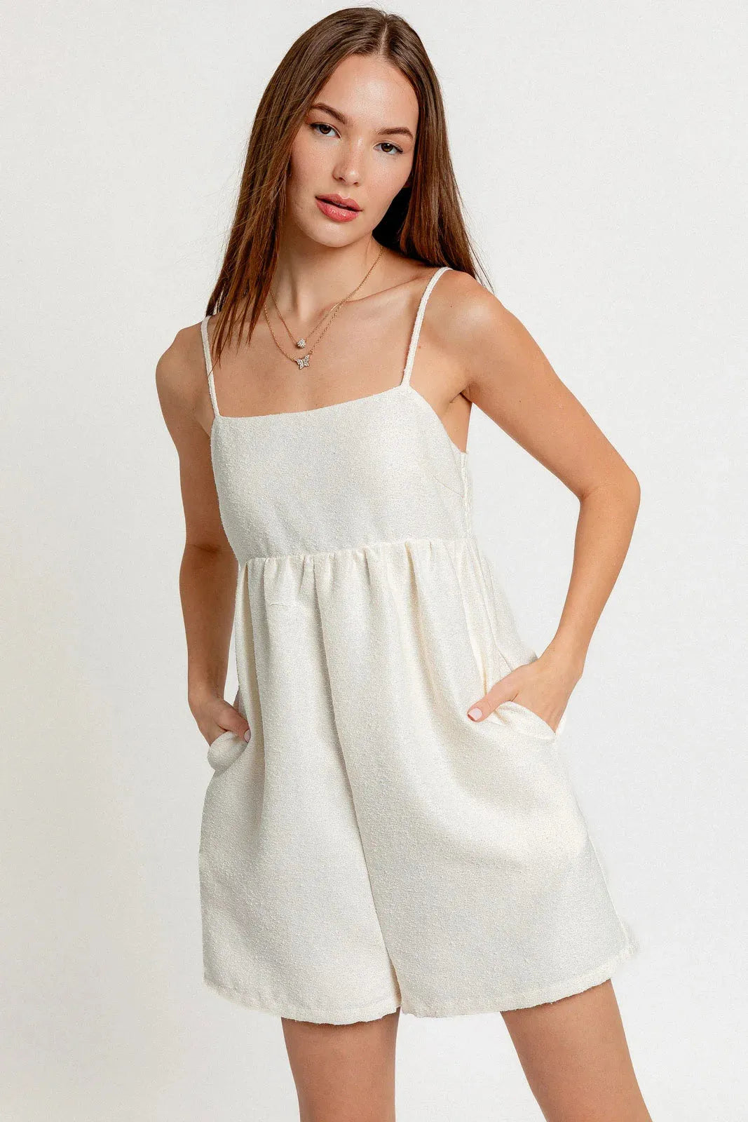 Effortlessly cute and comfortable, our Sleeveless Side Pocket Smocked Back Babydoll Romper is a must-have addition to your wardrobe. Featuring a flattering smocked back and convenient side pockets, this romper is perfect for sunny days and casual outings. Stay stylish and carefree with this versatile piece.