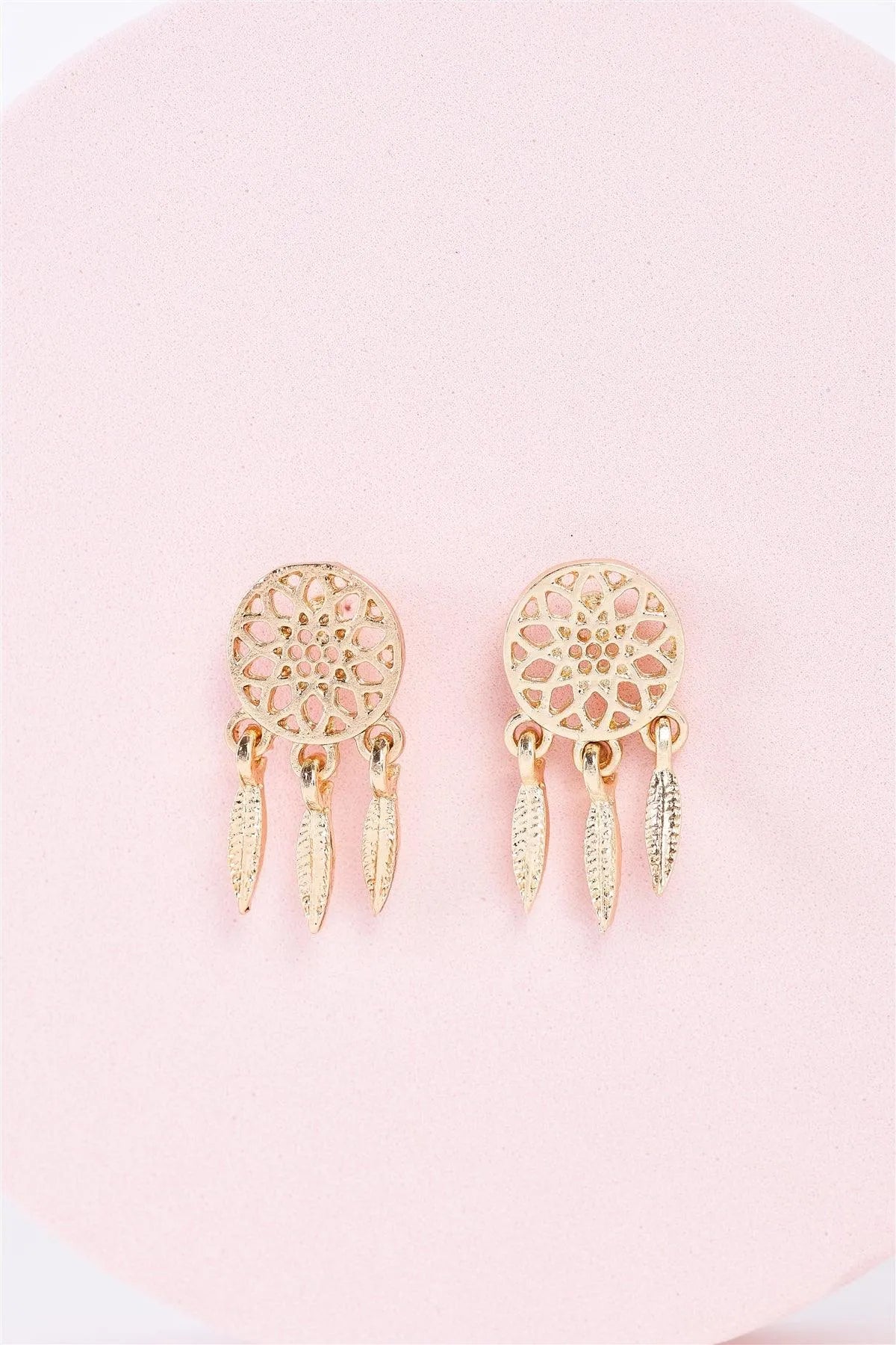 Small Dreamcatcher Gold Stud Dangle Drop Earrings Earrings /3 Pairs