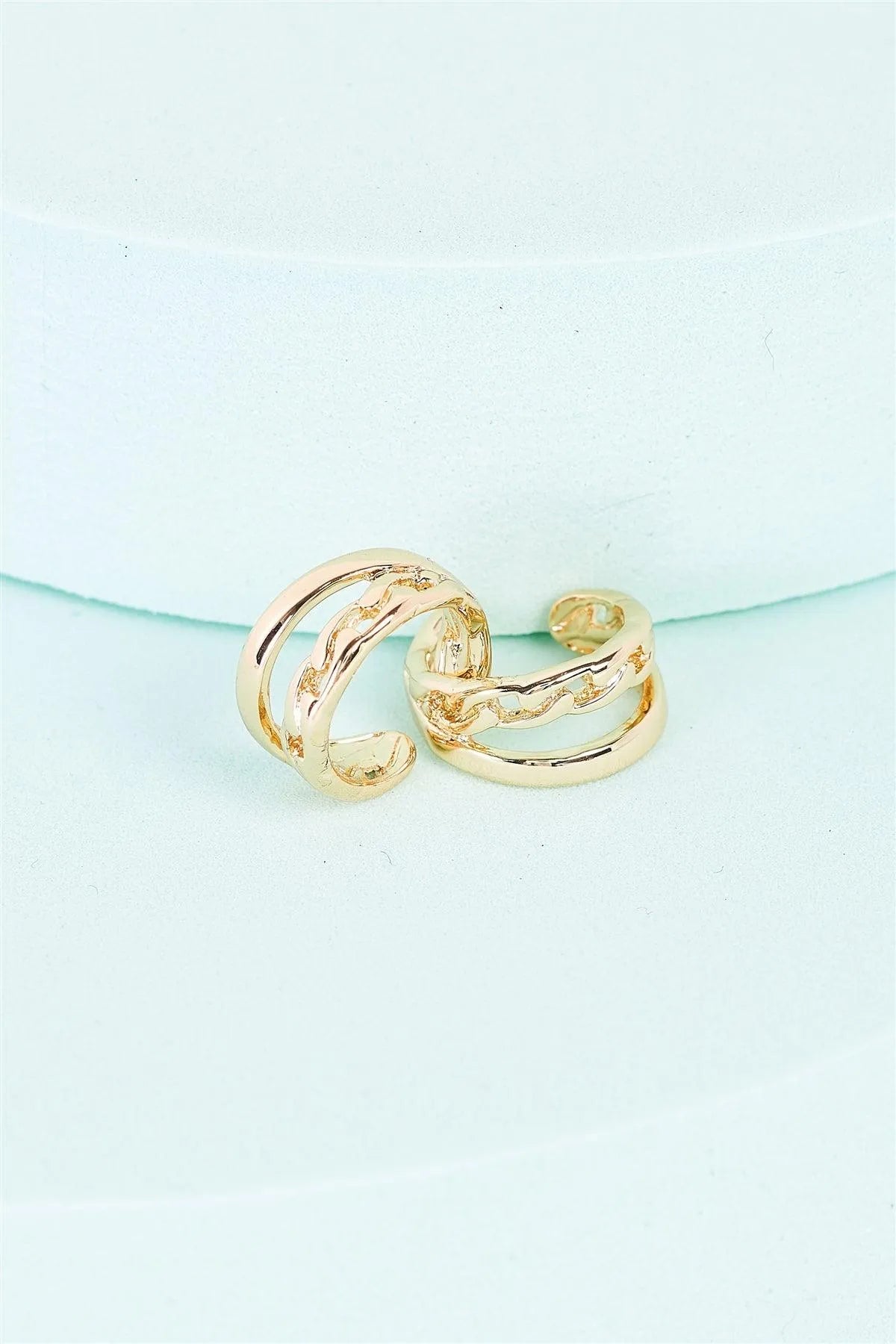 Small Gold Structured Linked Hoop Helix Ear Clips