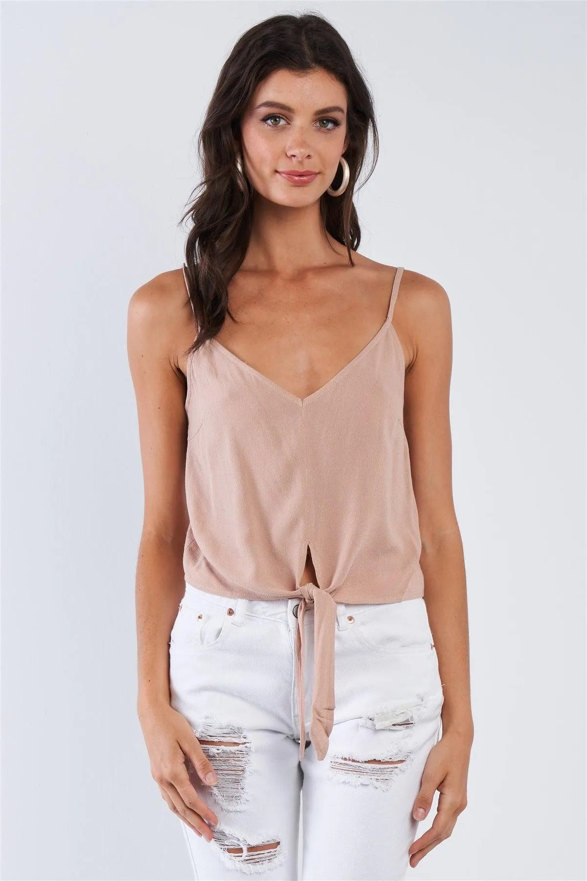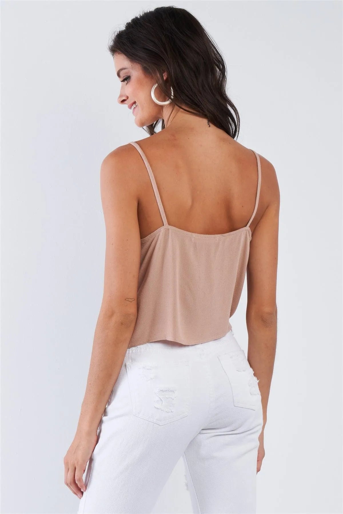 Smoke Taupe Rose Font Tummy Tie V-Neck Cami Crop Top