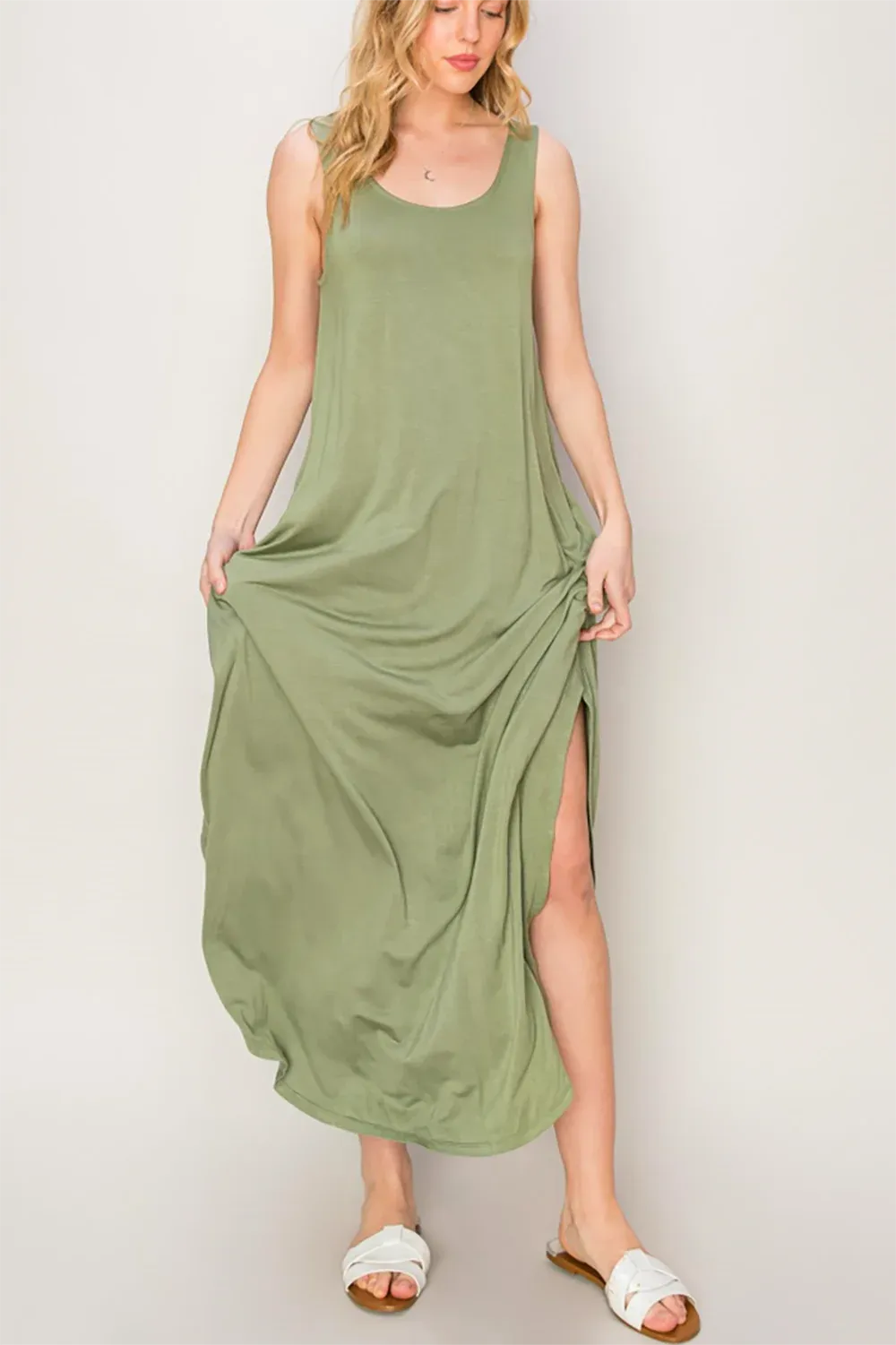 Sleeveless Two Side Pocket Flowing Maxi Dress