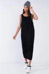 Sporty Sleeveless Stripe Ribbed Crew Neck Lose Fit Maxi Dress /2-2-3