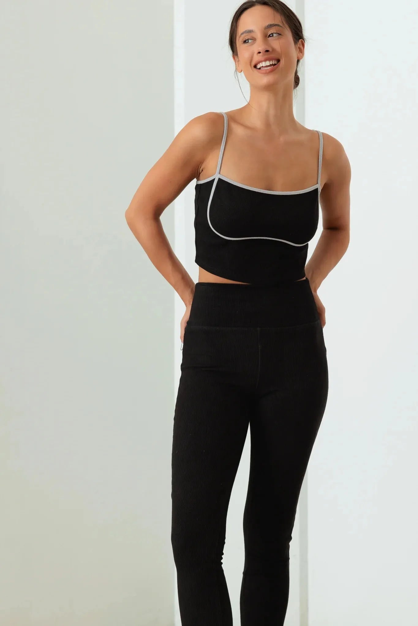 🖤 Why Your Customers Will Love It: This trendy workout set is the perfect addition to your boutique's activewear line. The unique design with contrast trim sets it apart from basic gym wear, appealing to fashion-conscious fitness enthusiasts. The ribbed fabric offers both comfort and a flattering fit, while the high-waisted leggings provide excellent support. This set isn't just for the gym - its versatile style makes it perfect for running errands or casual outings too. The mix-and-match potential of the separates adds extra value, allowing customers to create multiple looks. With its sleek aesthetic and functional features, this set is sure to be a fast-selling item. Stock up now to meet the high demand for stylish, comfortable activewear!