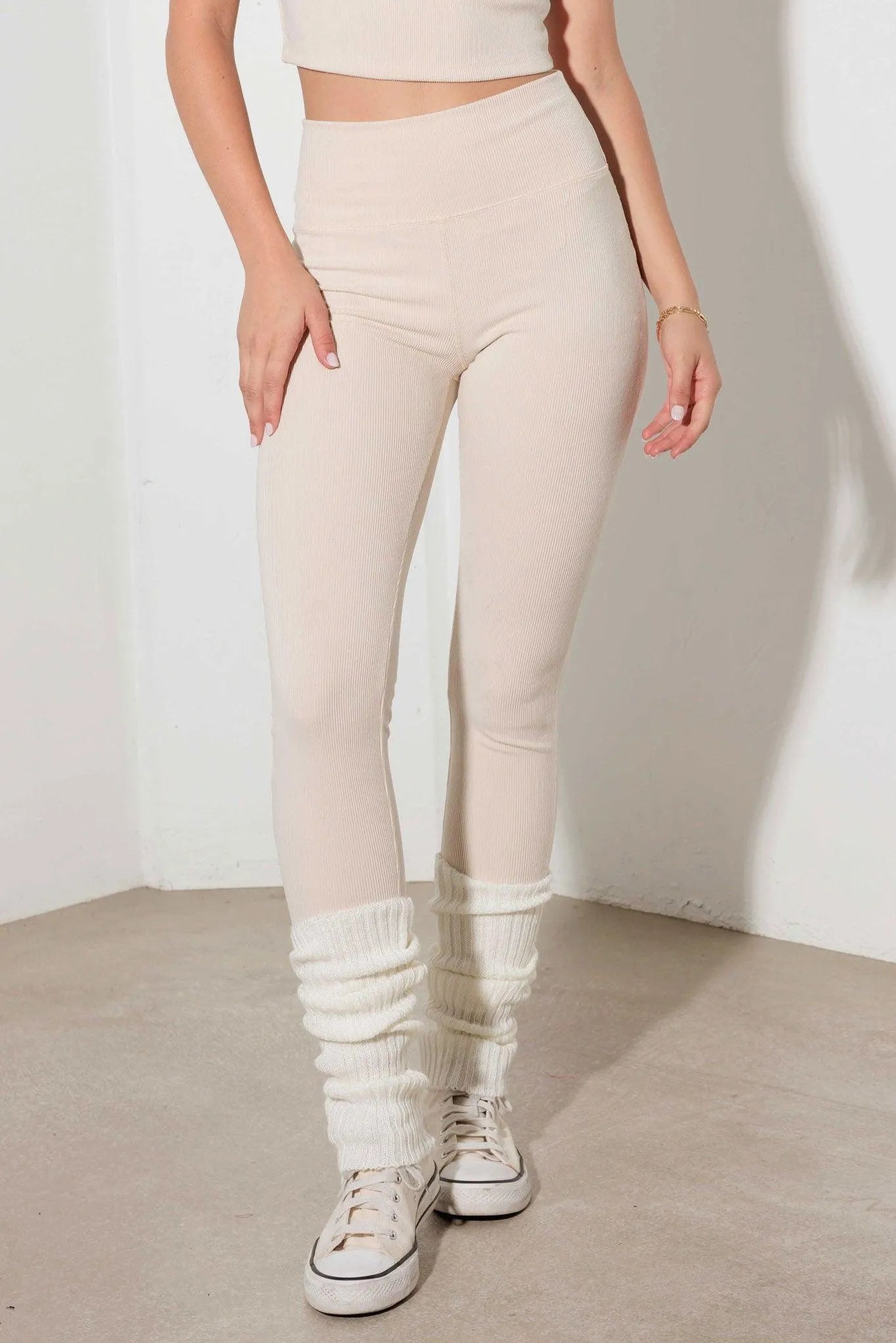 Contrast Trim Ribbed Crop Top High Waist Leggings Set