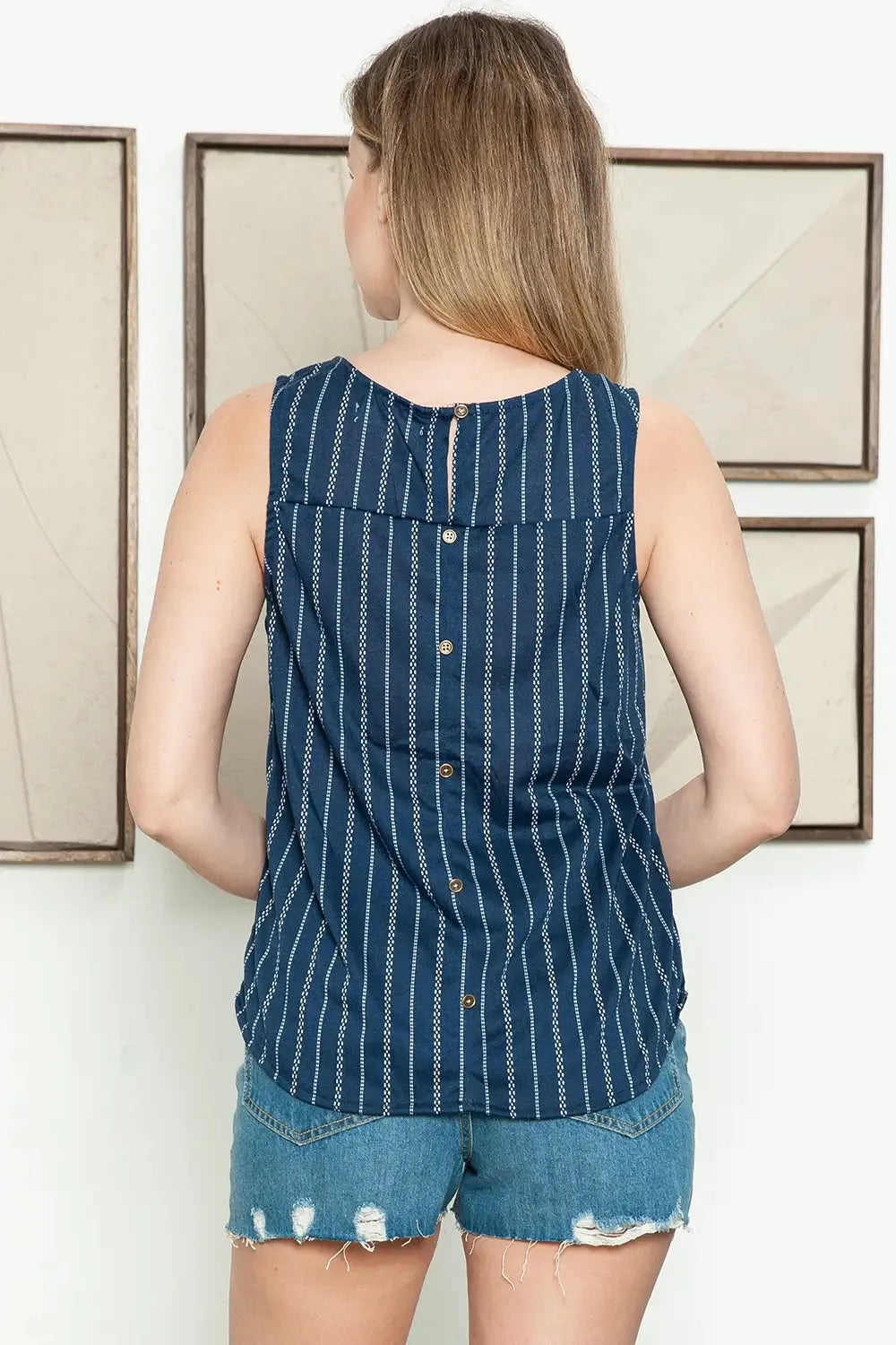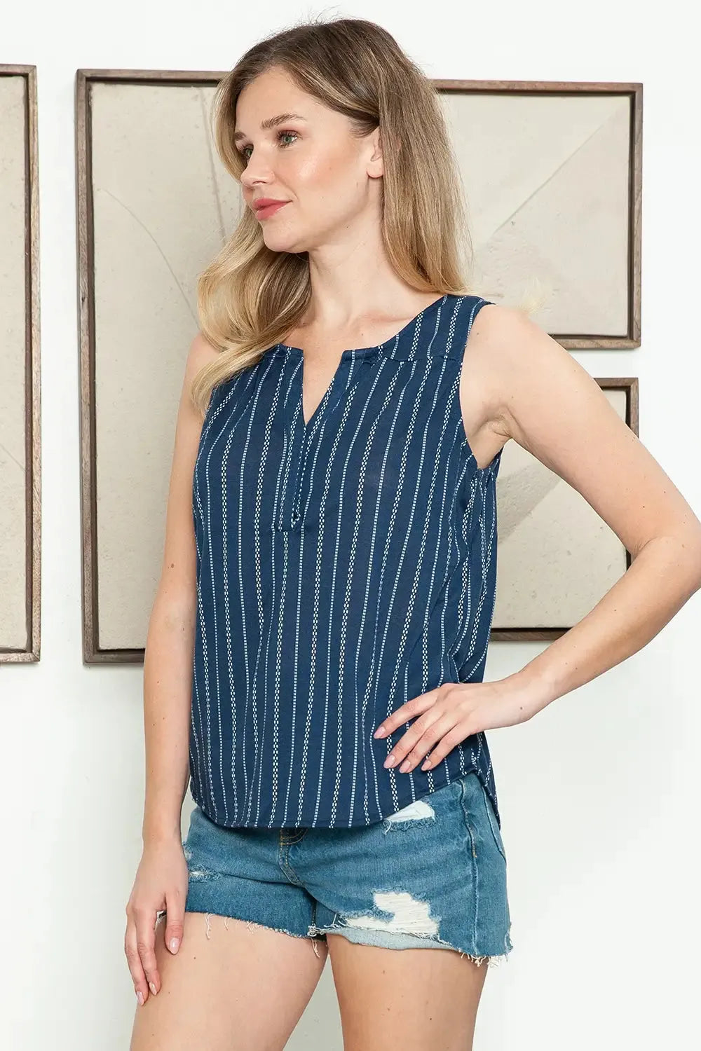 Stipe Pattern V-Neck Sleeveless Shirt Top