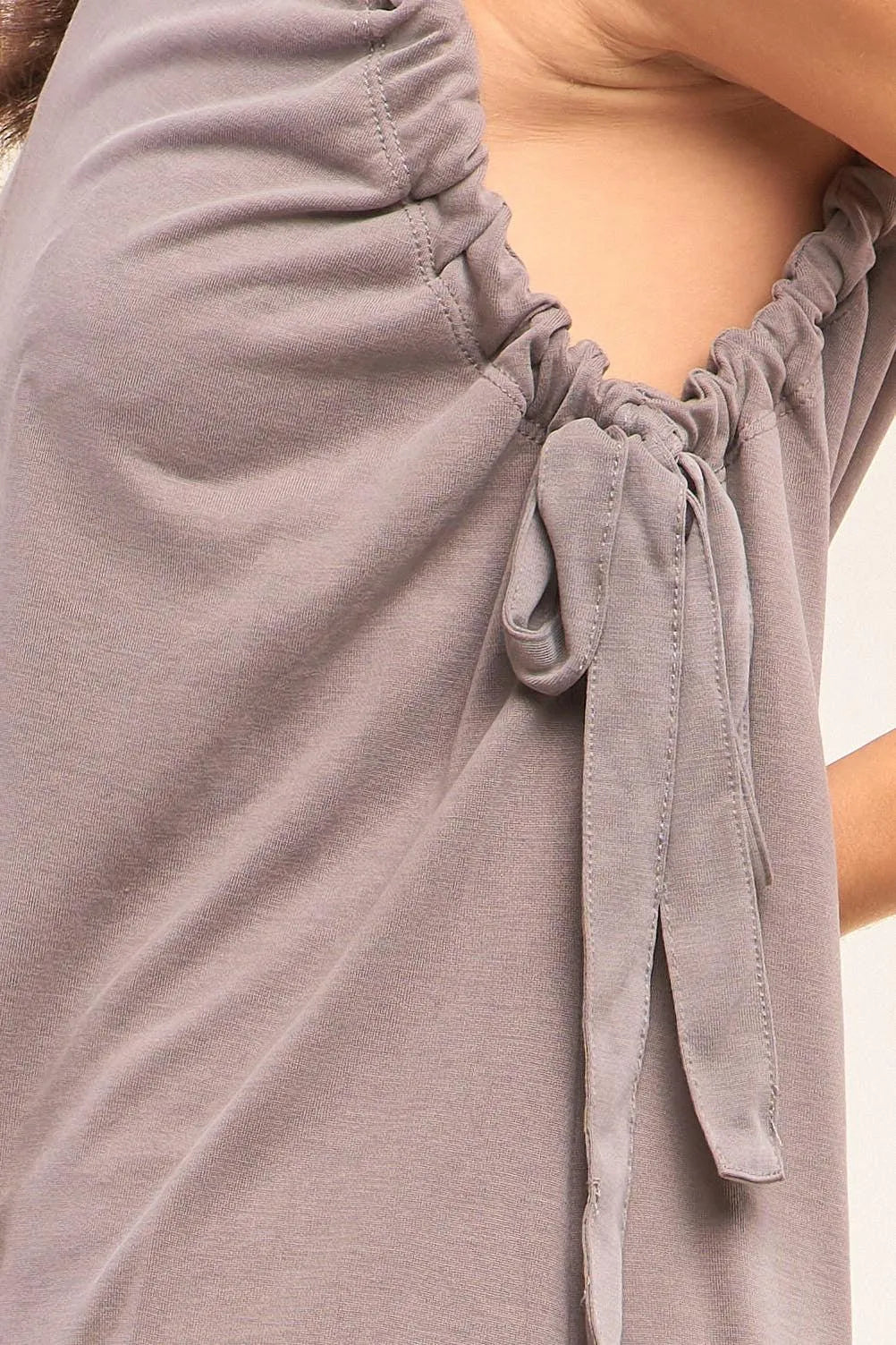 Stone Drawstring Crew Neck Relaxed Fit Tunic Top
