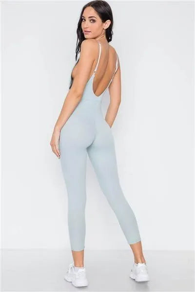 women jumpsuit: stretch-knit jumpsuit featuring a V-neckline, cami straps, a scoop back, and a form-fitting silhouette,This look is perfect for cycling, yoga, jogging, or any sport where you want to move with ease and look great doing it!