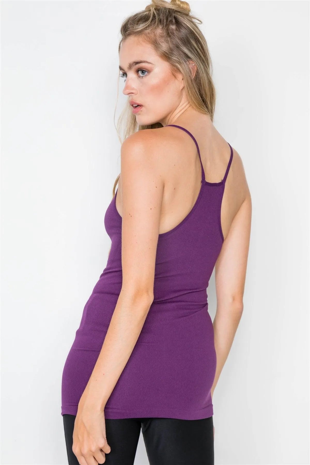 🖤 Top features: Purple, sleeveless, spaghetti cami-straps, long cami length, very stretchy, basic, unlined, casual