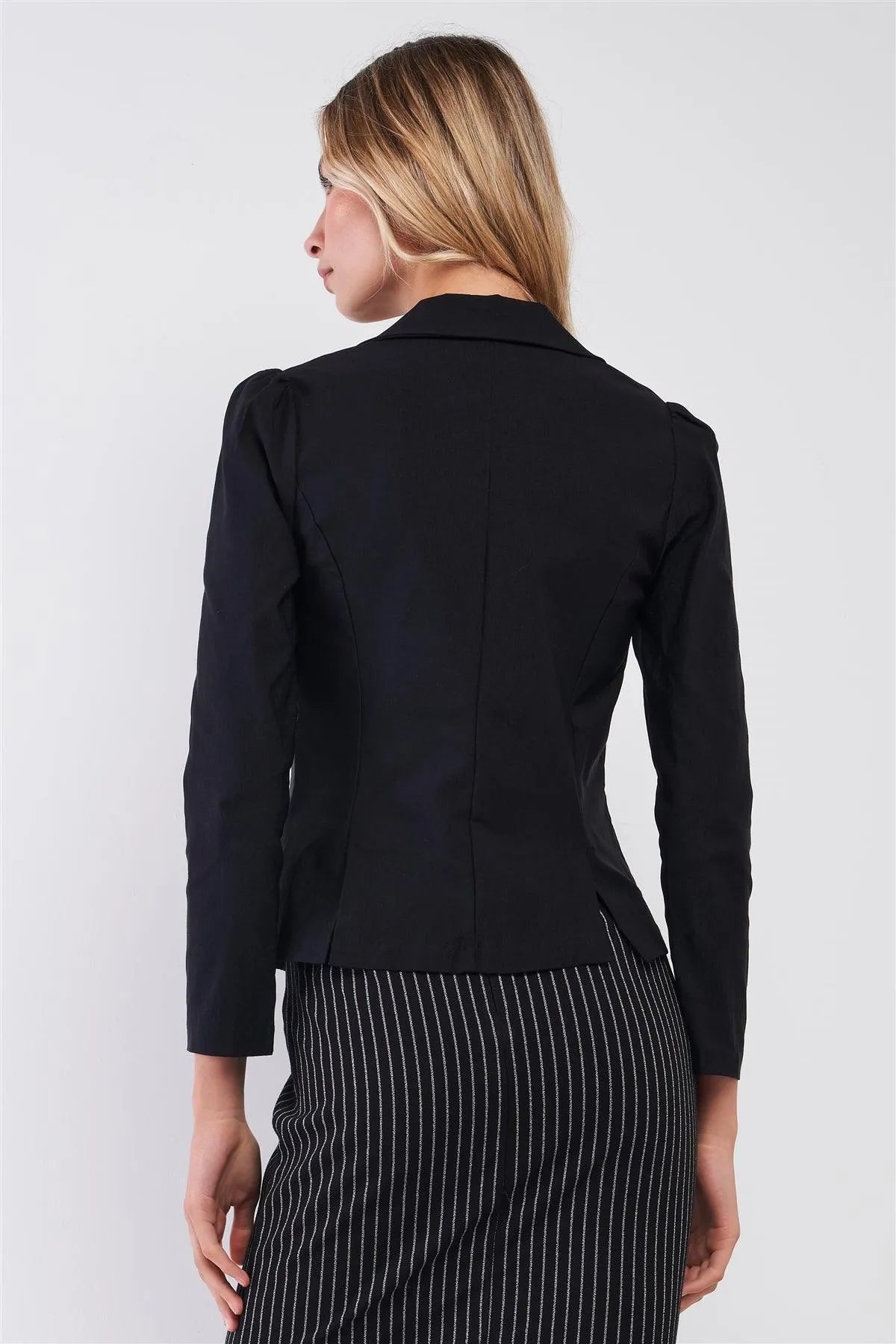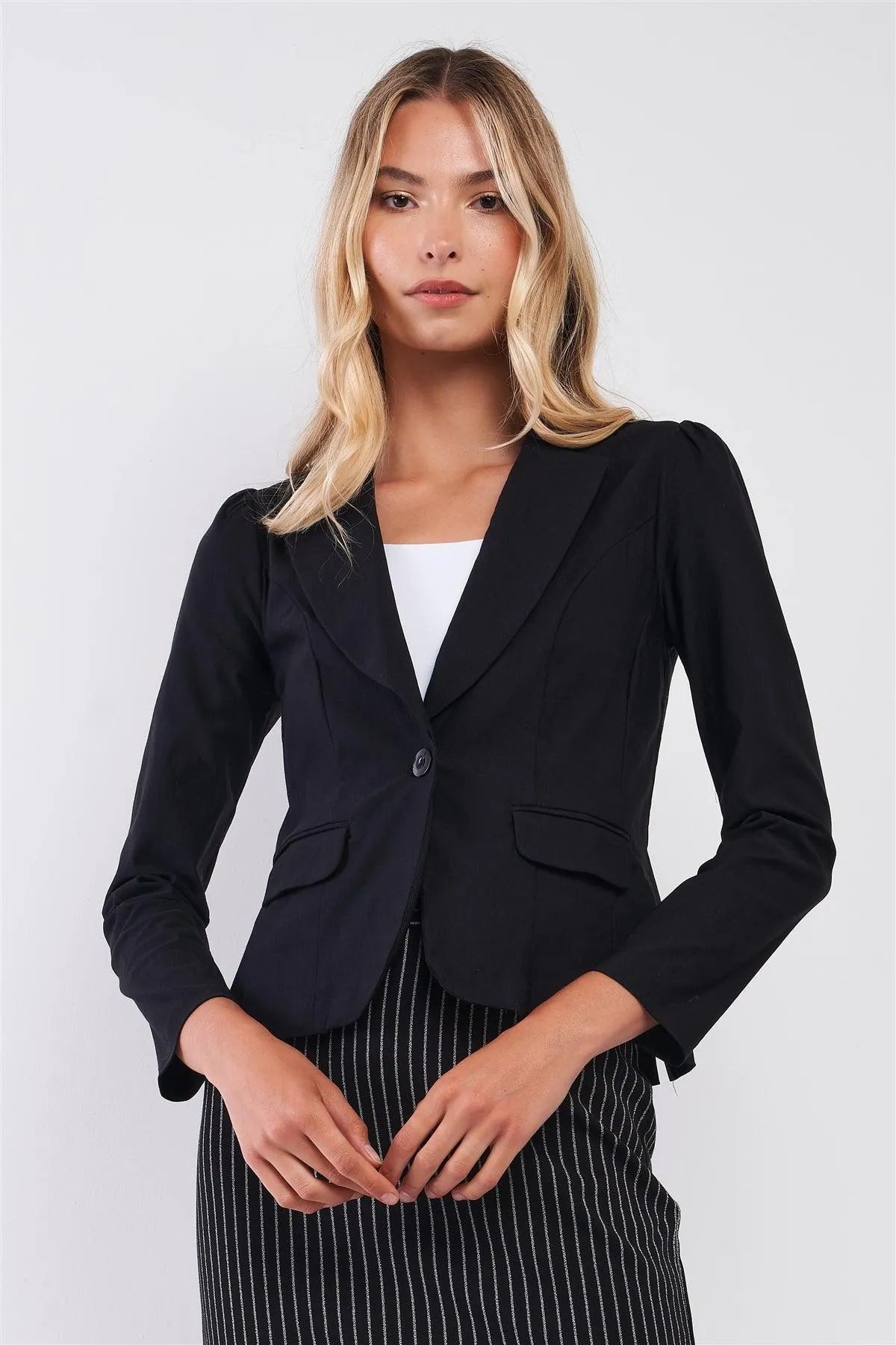 Strict Black Lapeled Collar Fitted Single-Breasted Blazer /1-2-2-2