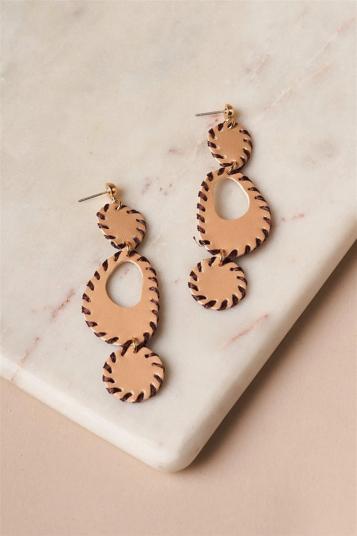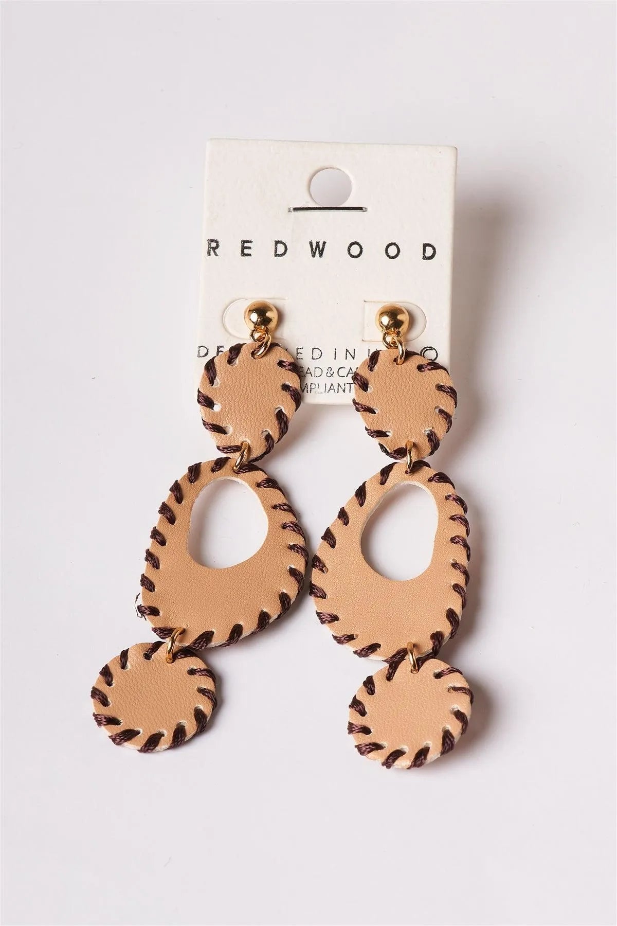 Tan Baseball Stitched Vegan Leather Earrings /1 Pair