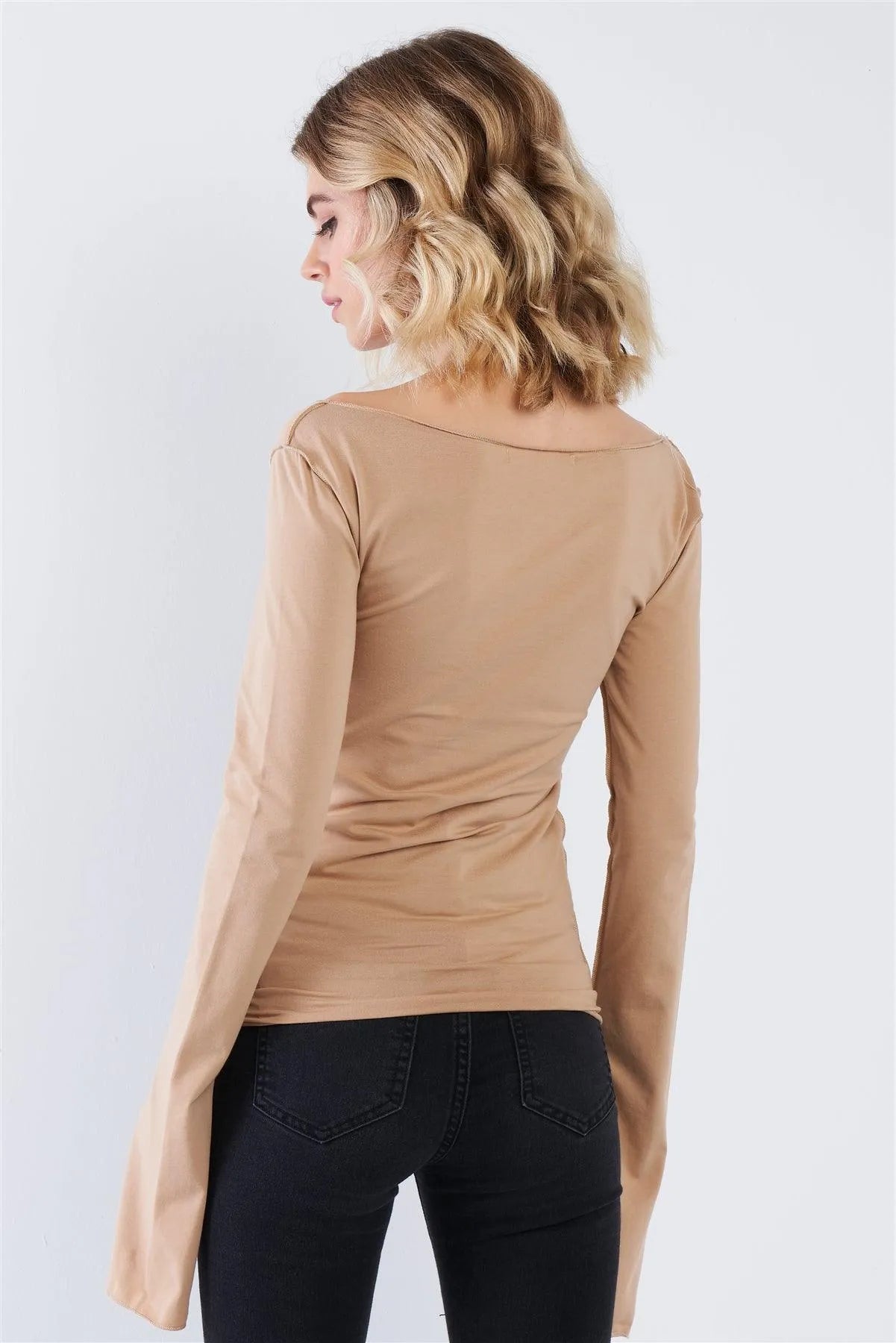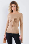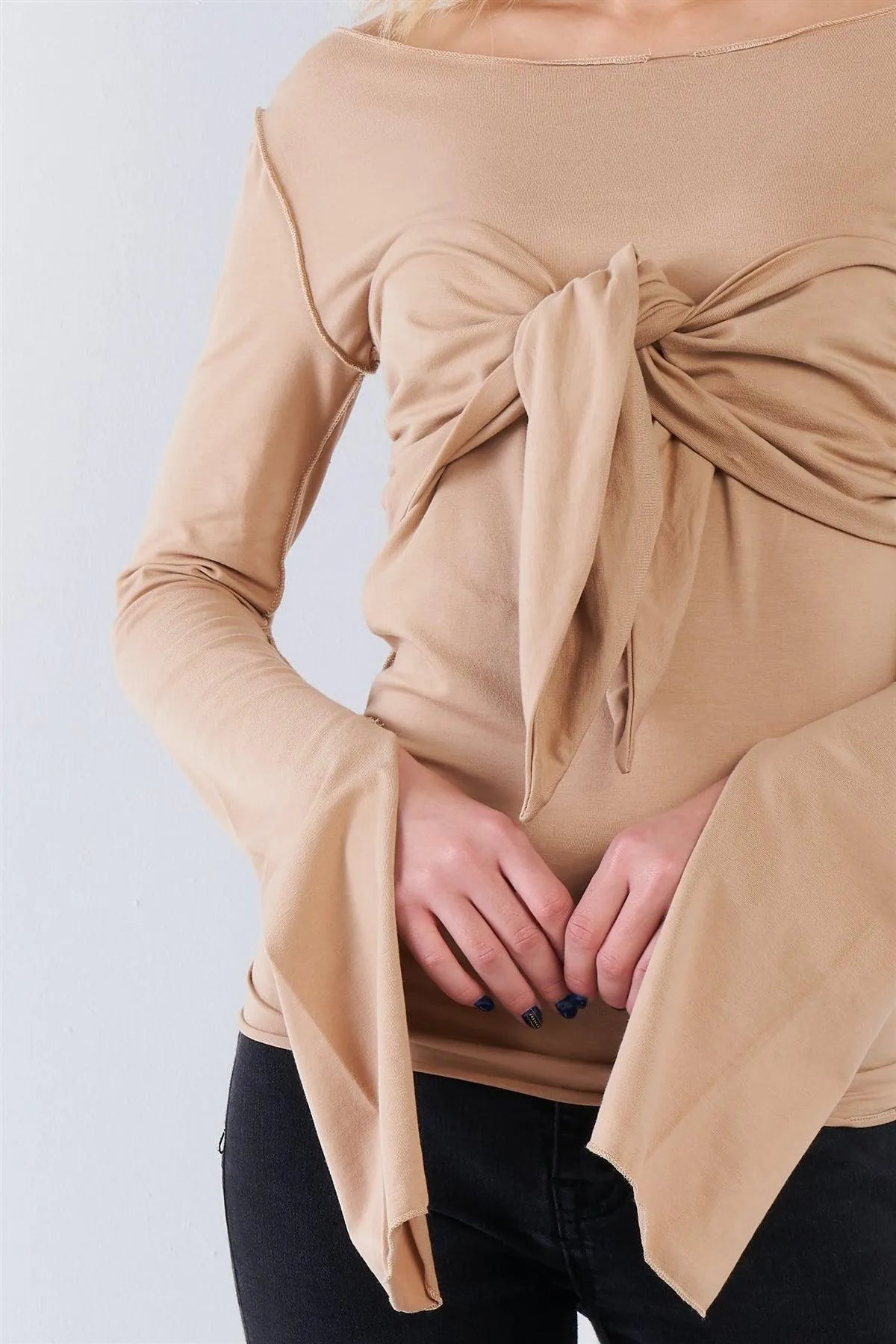 🖤 Indulge in effortless style with our Tan Long Sleeve Front Tie Top. Designed with a fitted silhouette and adjustable front tie, this top exudes casual elegance. The long sleeves add a touch of sophistication to any outfit. Unlined for maximum comfort.