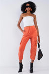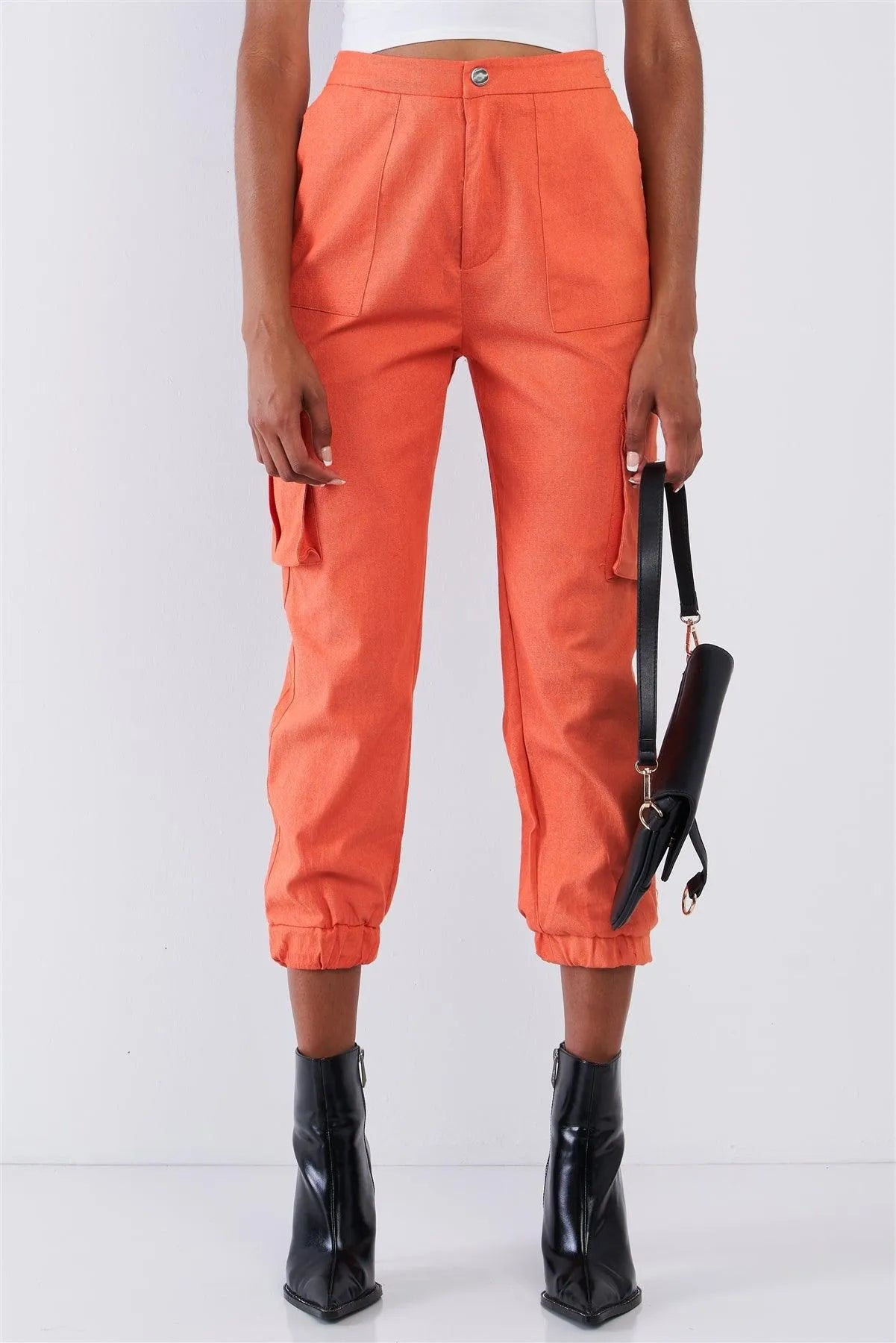 Tangerine Orange High Waisted Cargo Pocket Jogger Pants /2-2-2