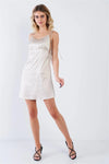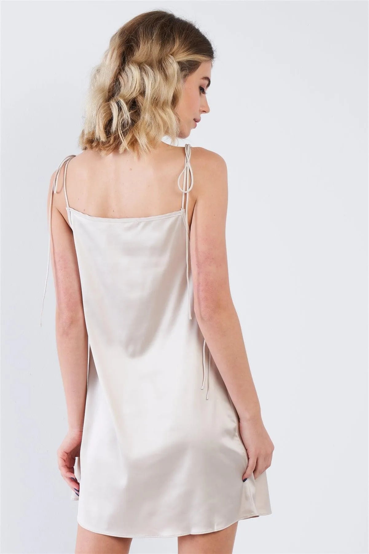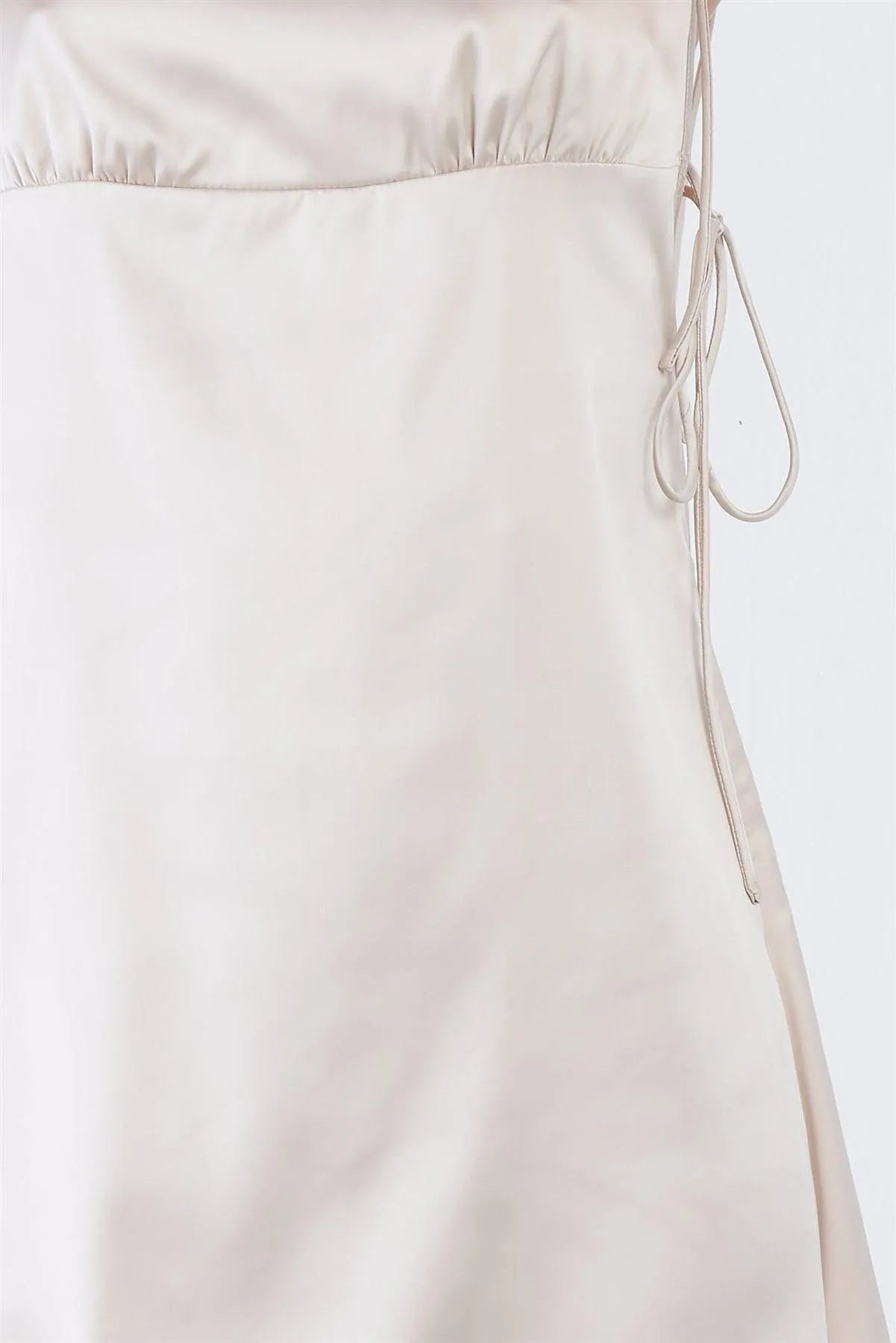 Taupe Beige Silk Side Cut Out Square Neck Mini Dress /3-2-1
