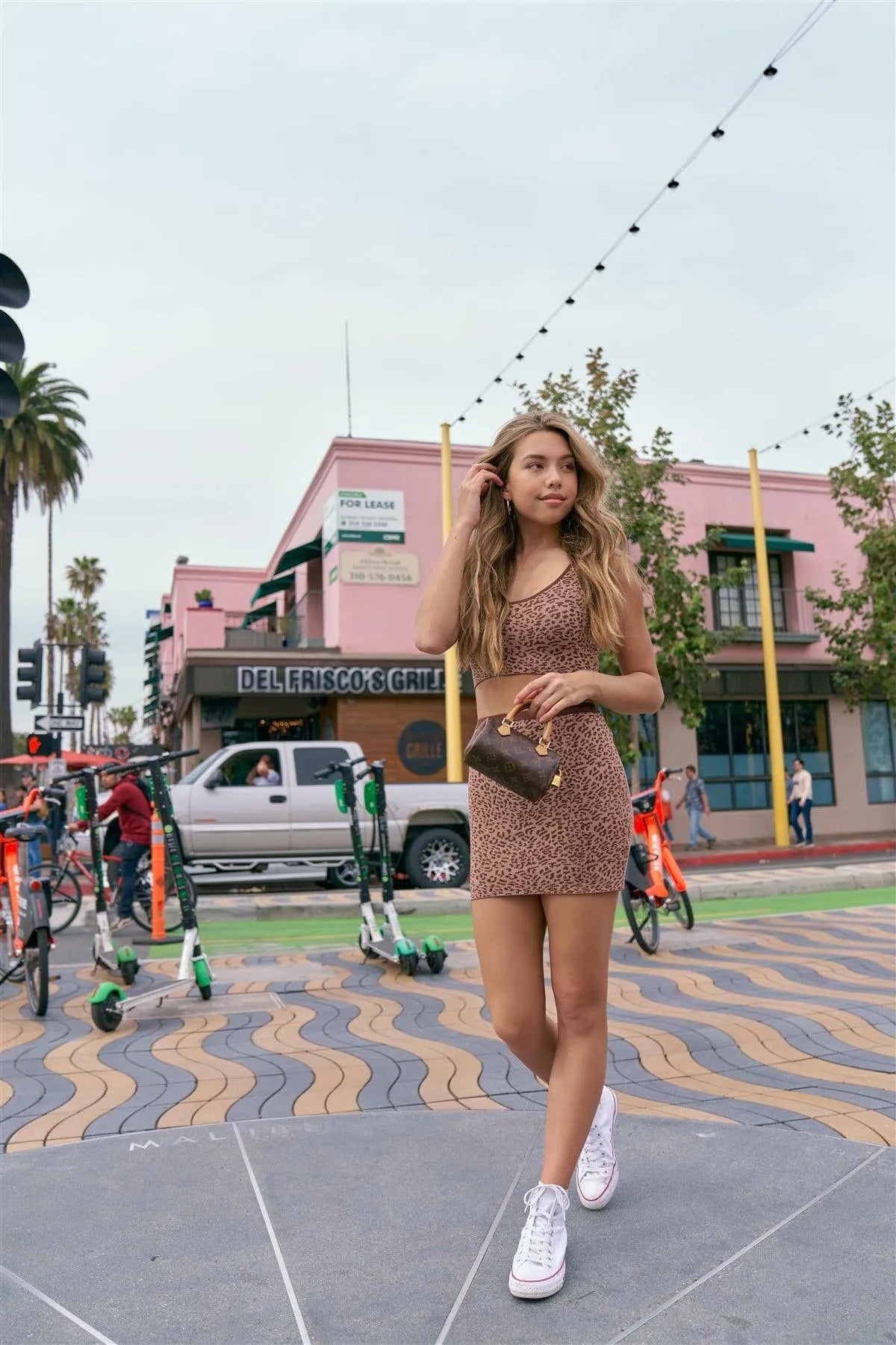 Taupe Brown Leopard Print Crop Tank Top & Mini Skirt Set
