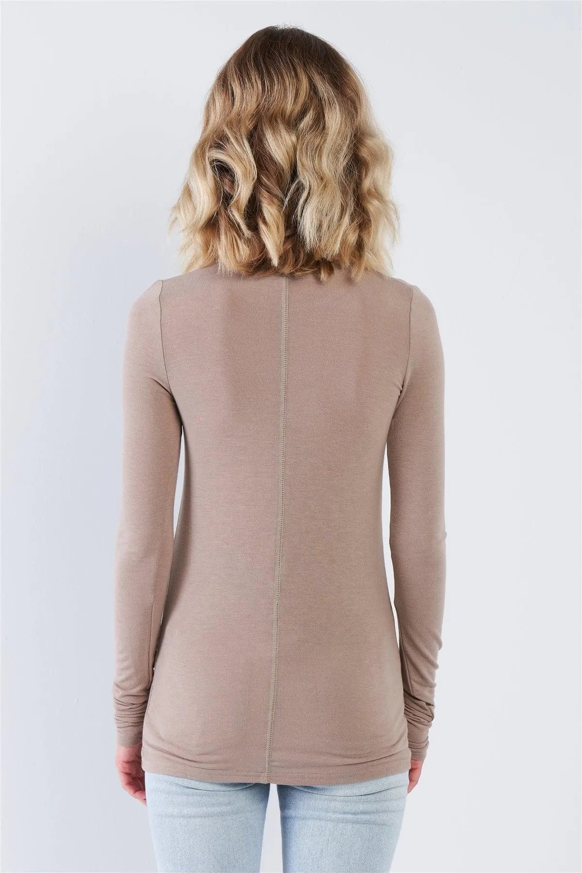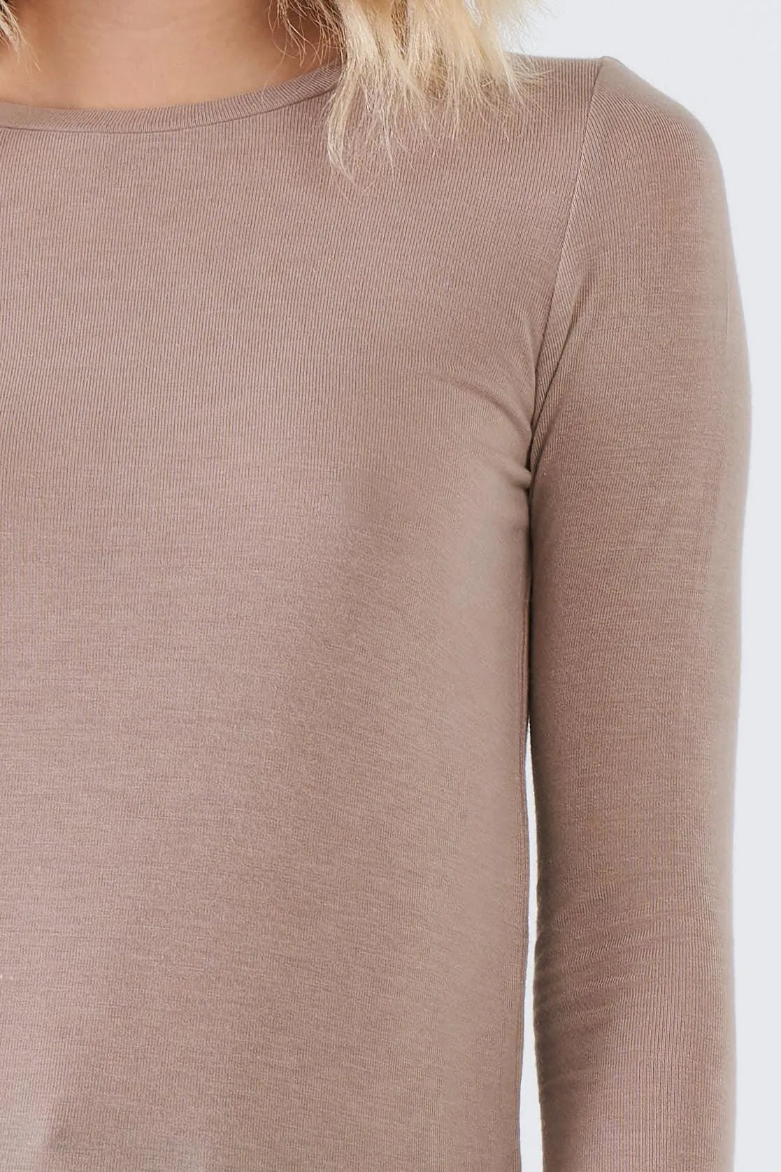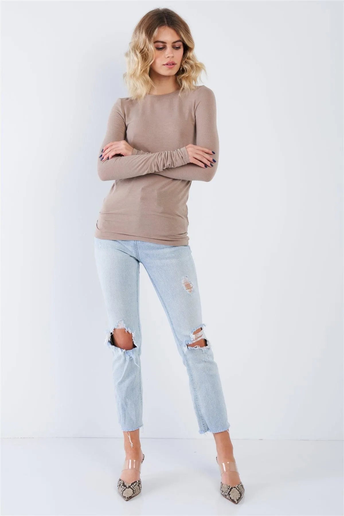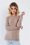 Taupe Casual Basic Long Sleeve Stretchy Bodycon Top /3-2-1