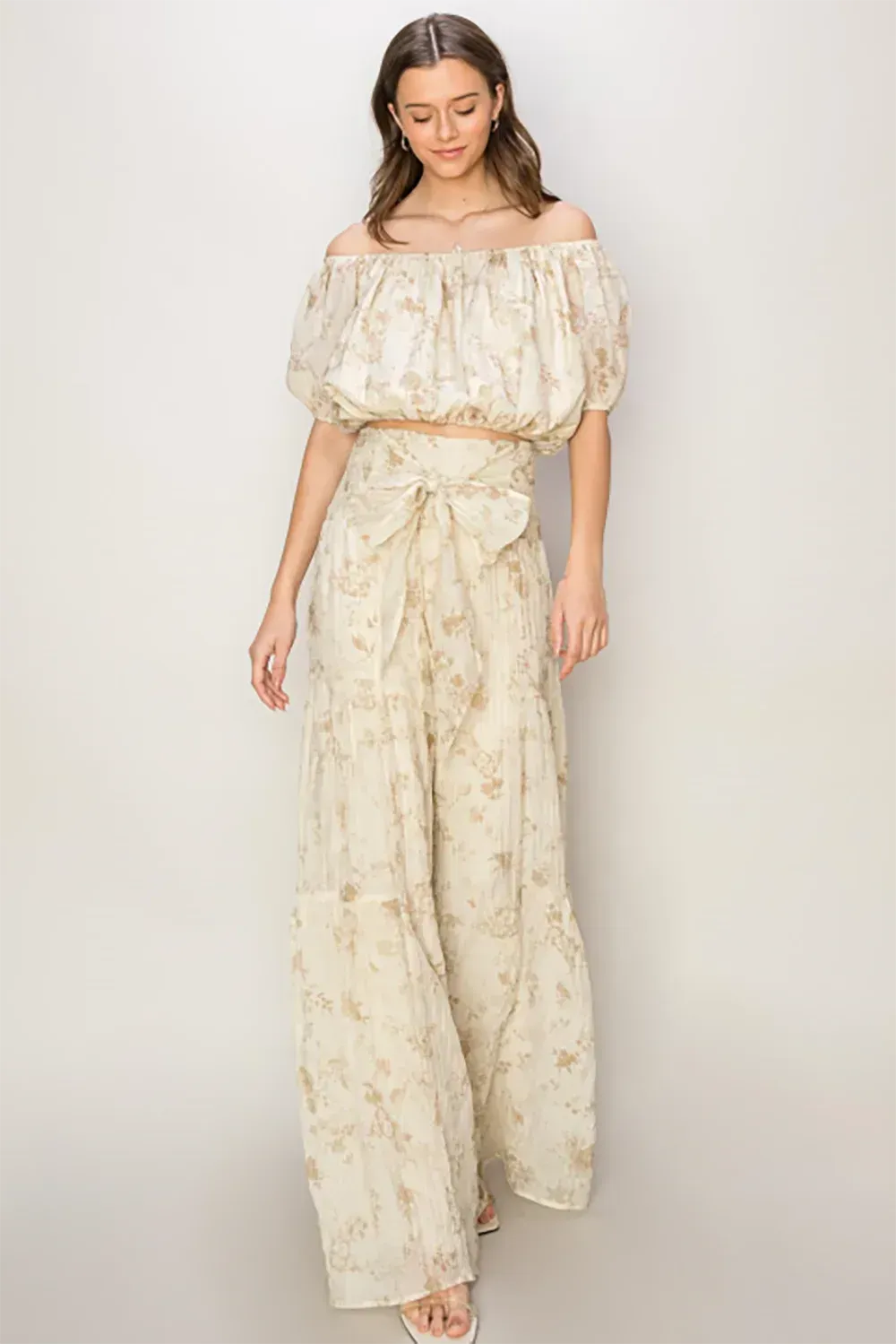 Indulge in luxury with our exquisite Taupe Floral Off-Shoulder Elastic Hem Puff Sleeve Crop Top. This sophisticated piece features a beautiful floral print, off-shoulder design, and elastic hem for a perfect fit. The puff sleeves add a touch of elegance, making it a must-have for any fashion-forward wardrobe. Elevate your style and stand out in this exclusive top.