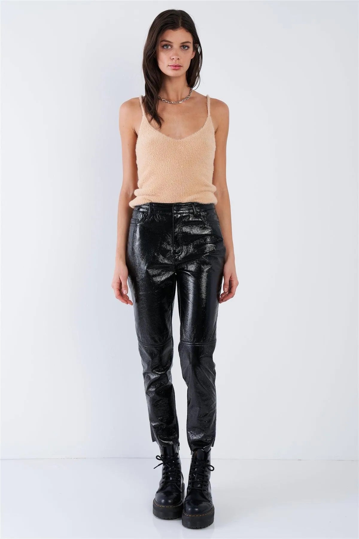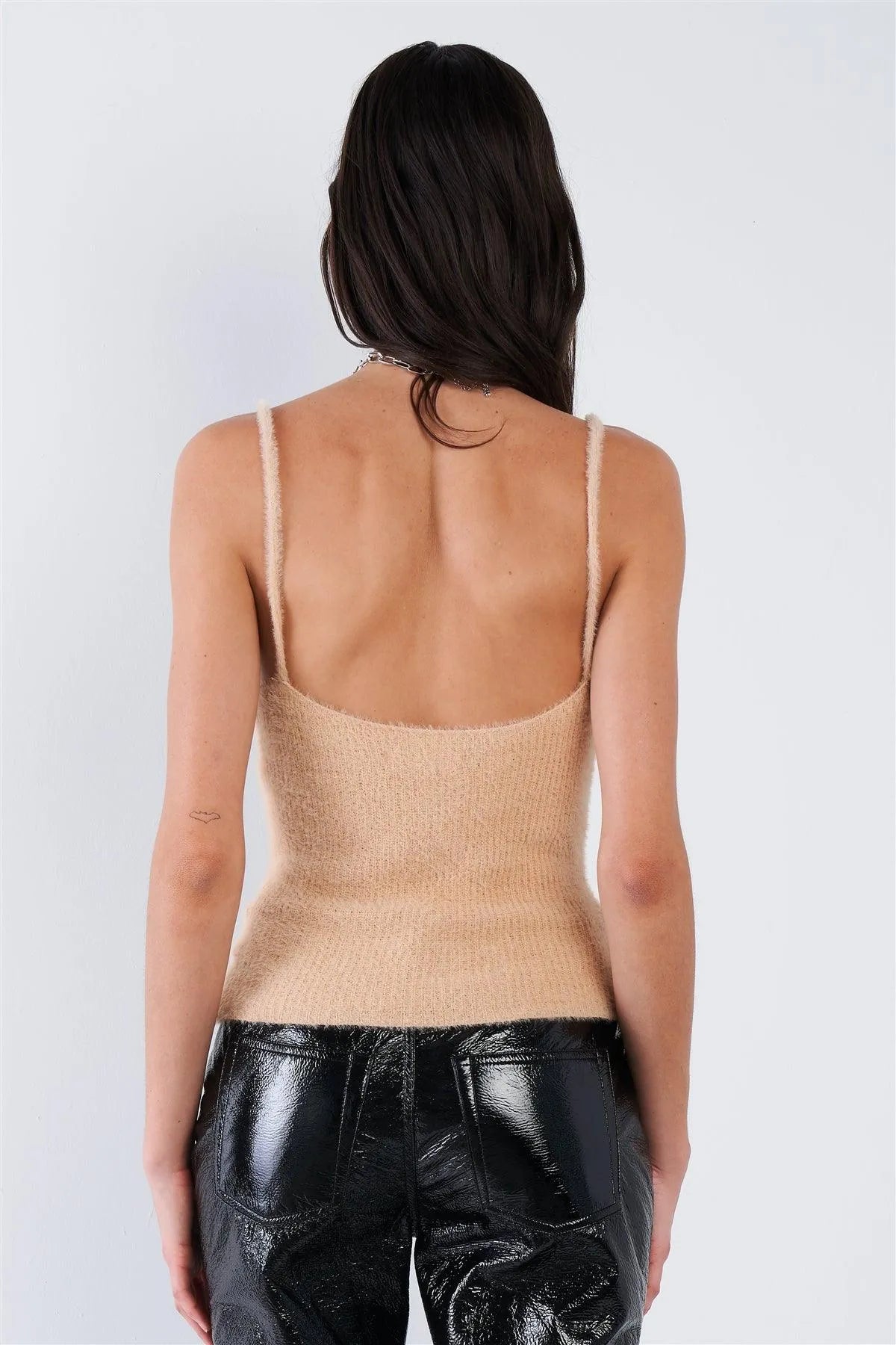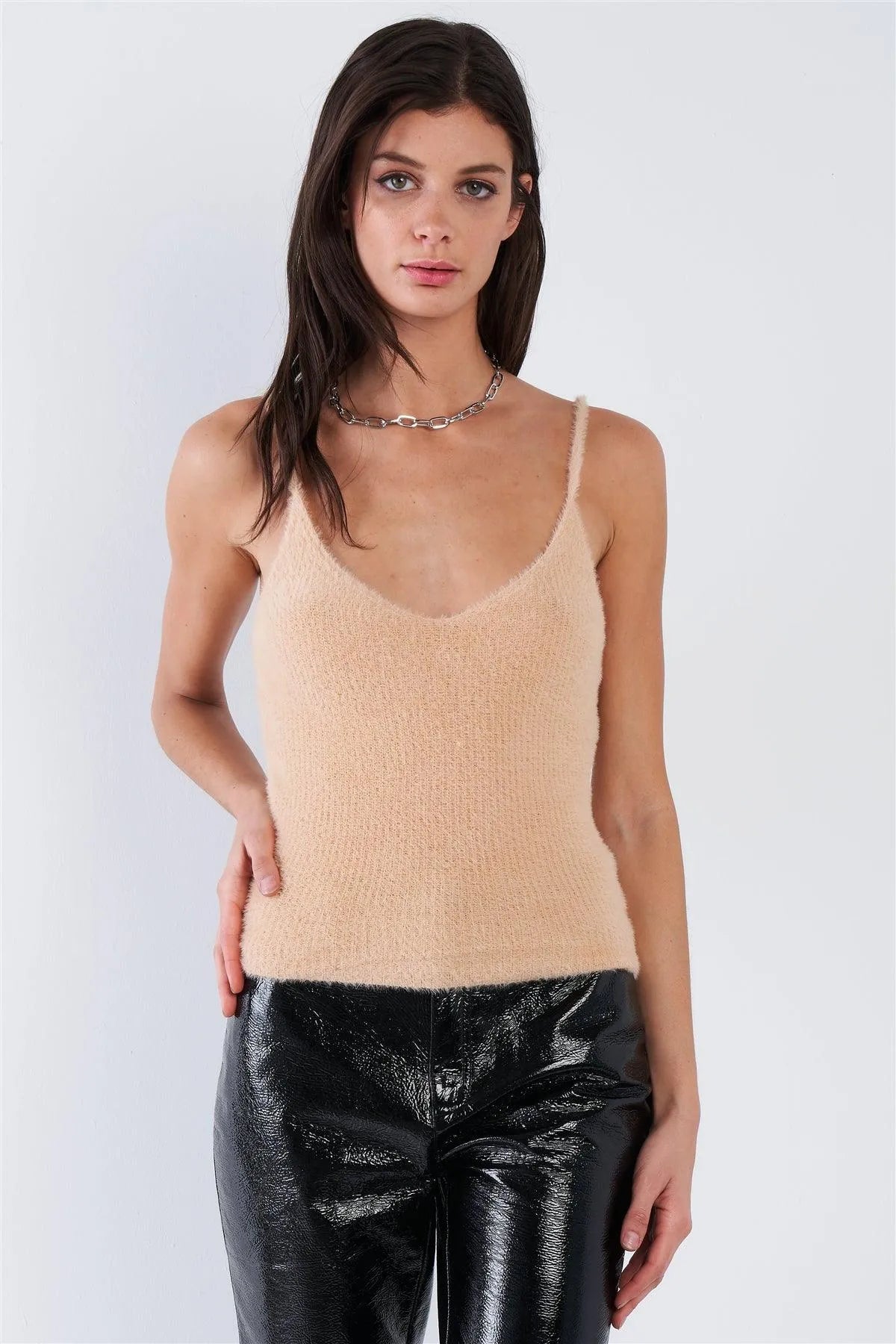 Taupe Hairy Ribbed V-Neck Spaghetti Strap Tank Top /3-2-1