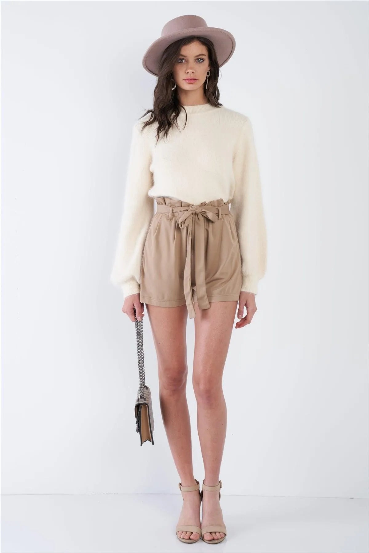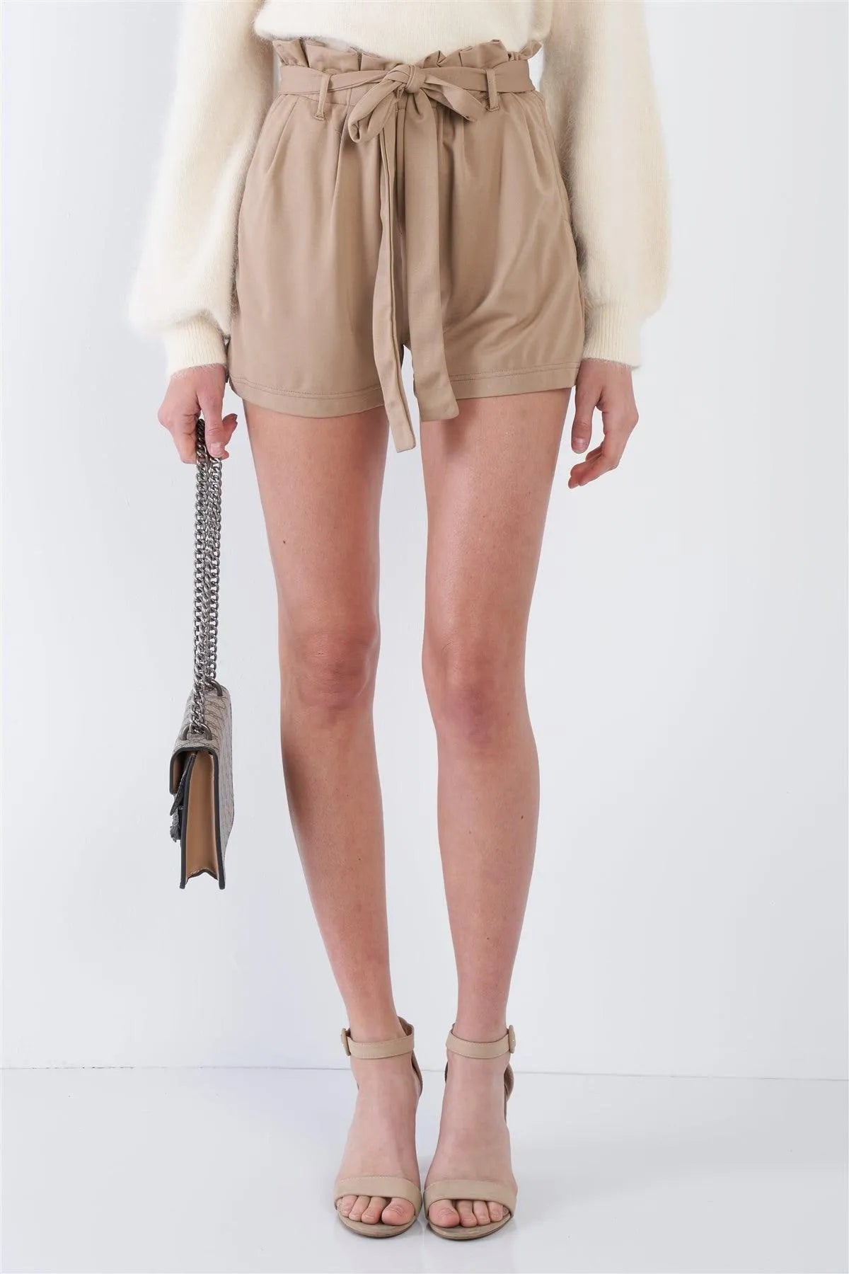 Taupe High Waist Frill Trim Casual Office Chic Shorts /3-2-1