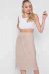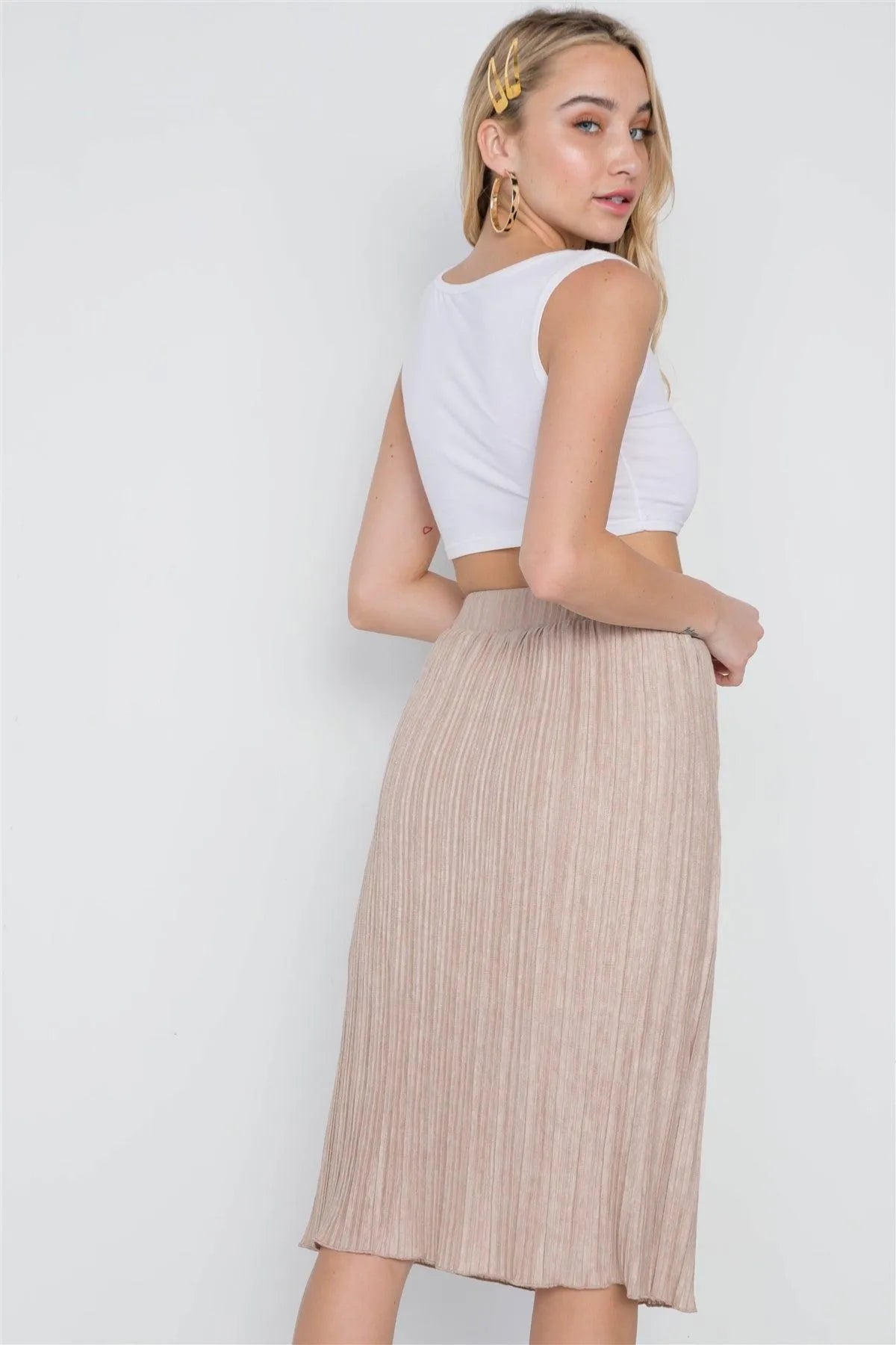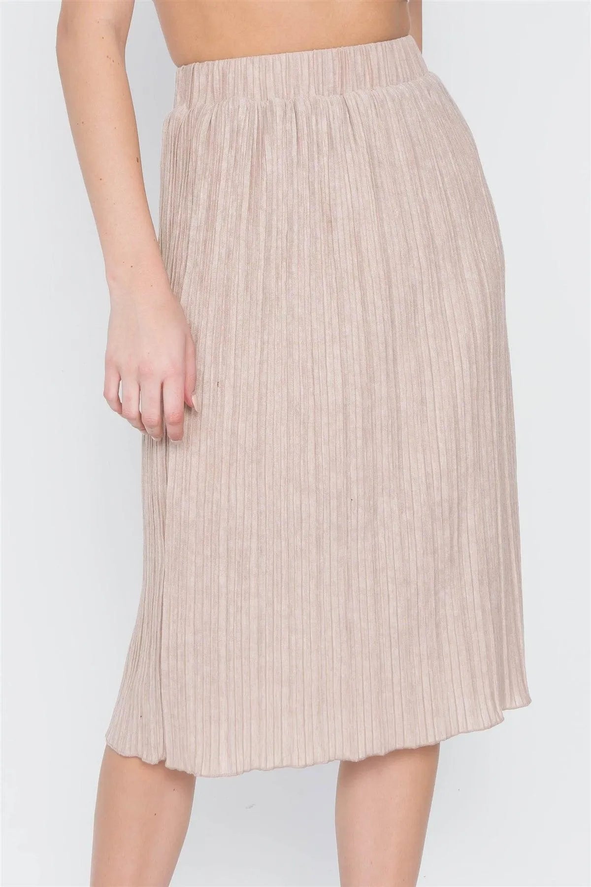 Taupe Knit Pleated High-Waist Midi Skirt /2-2-2