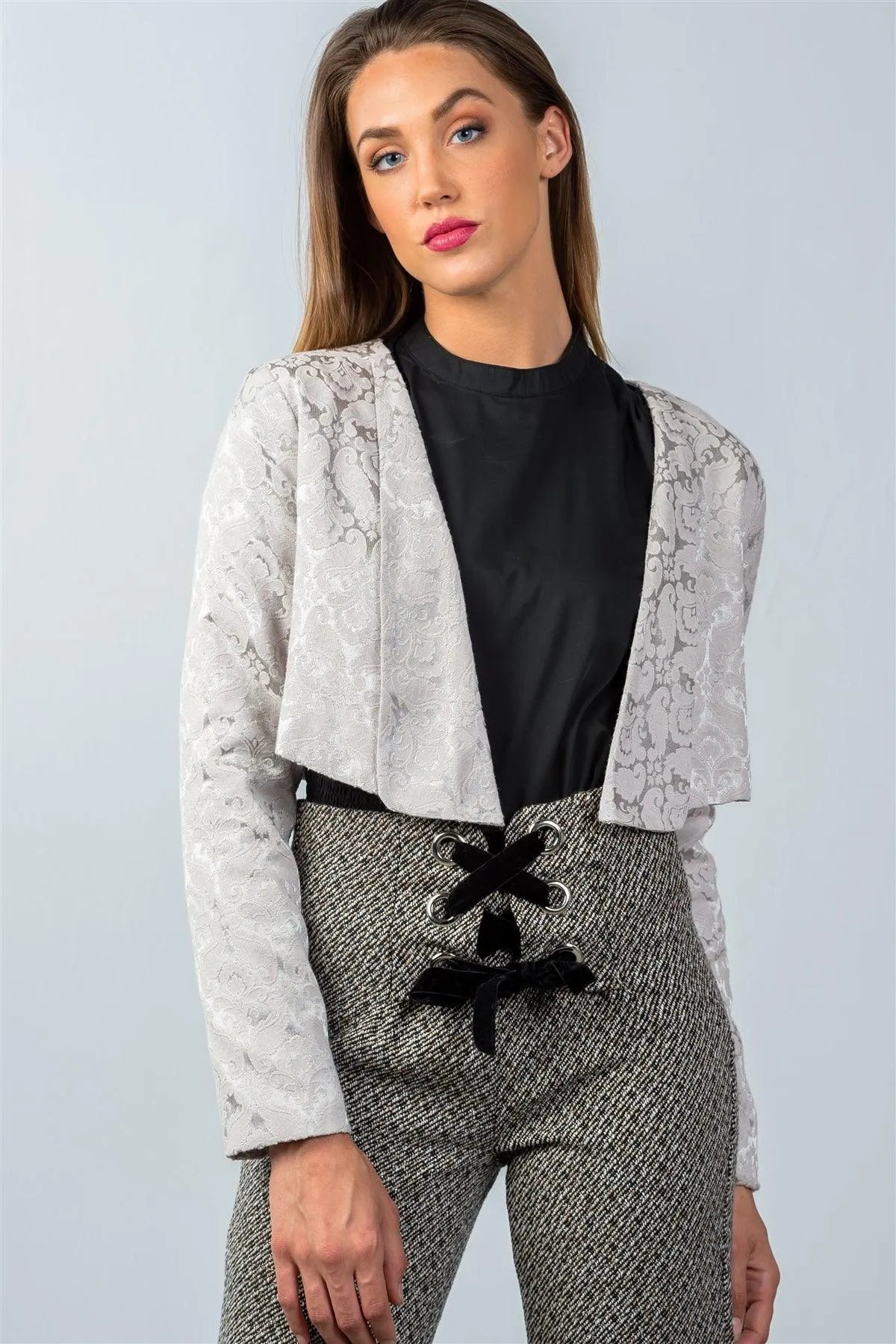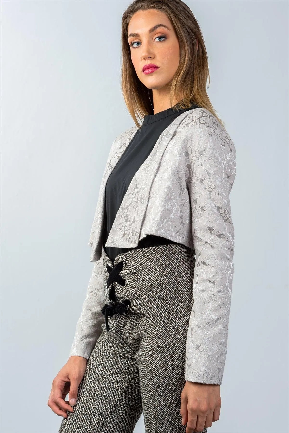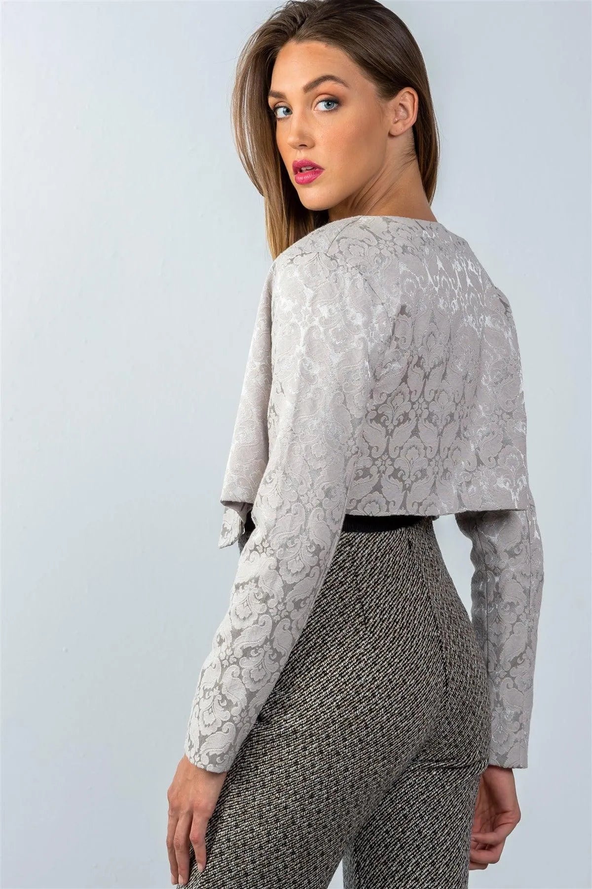 Taupe Paisley Textured Cropped Blazer / 2-2-2