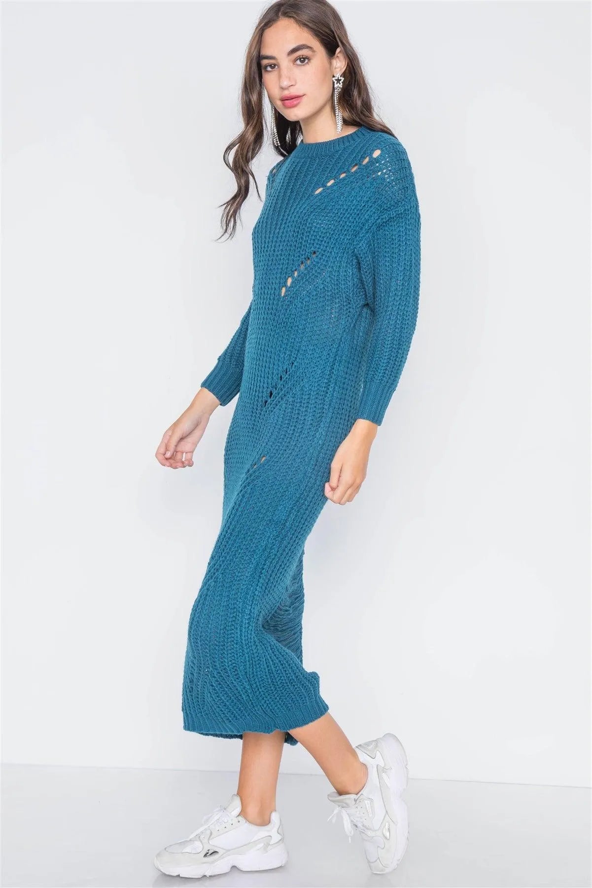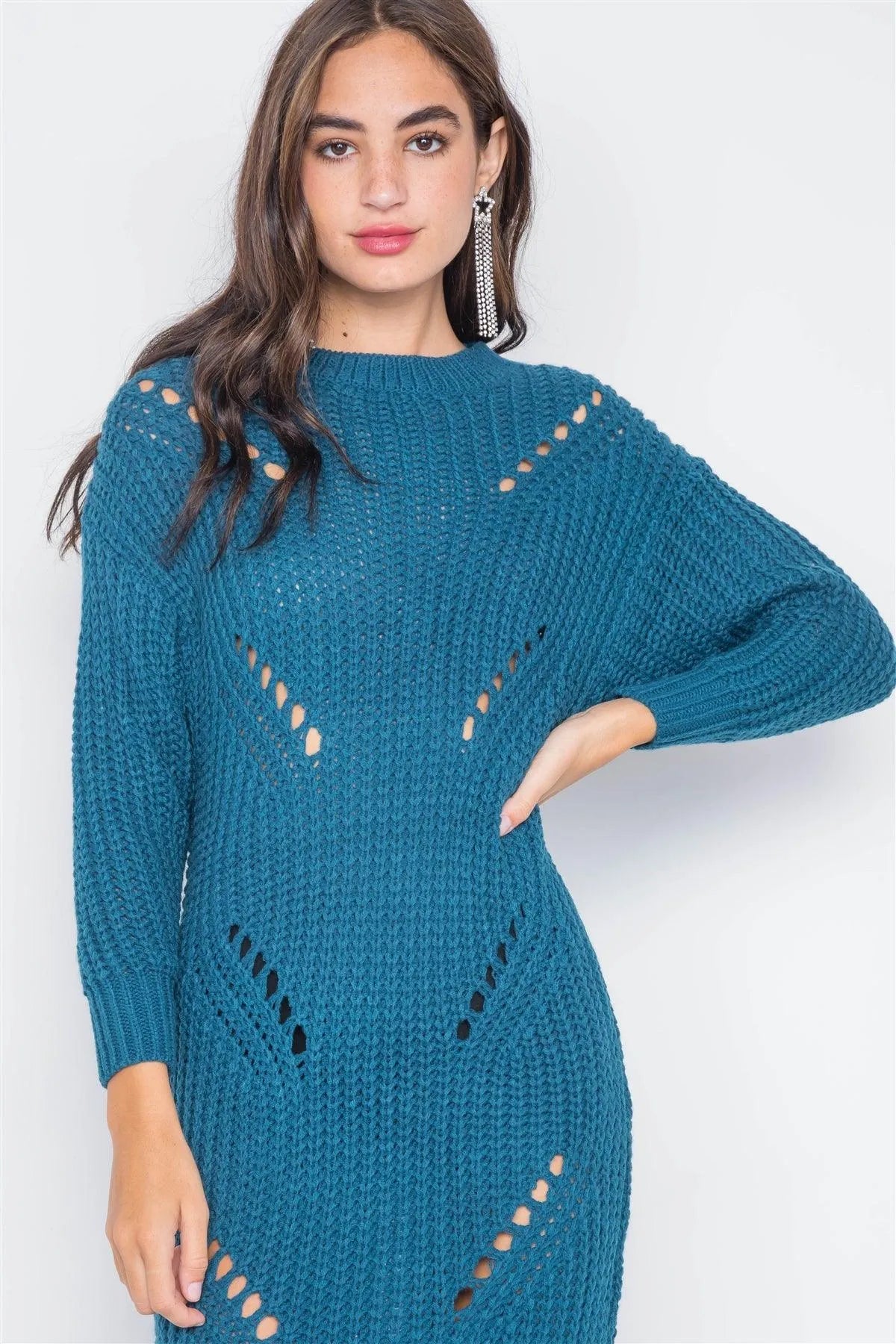 Teal Chunky Knit Long Sleeve Sweater Dress / 2-3