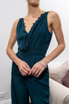 Teal Front Double Wrap Lace Trim Neck Detail Sleeveless Jumpsuit /1-3-2