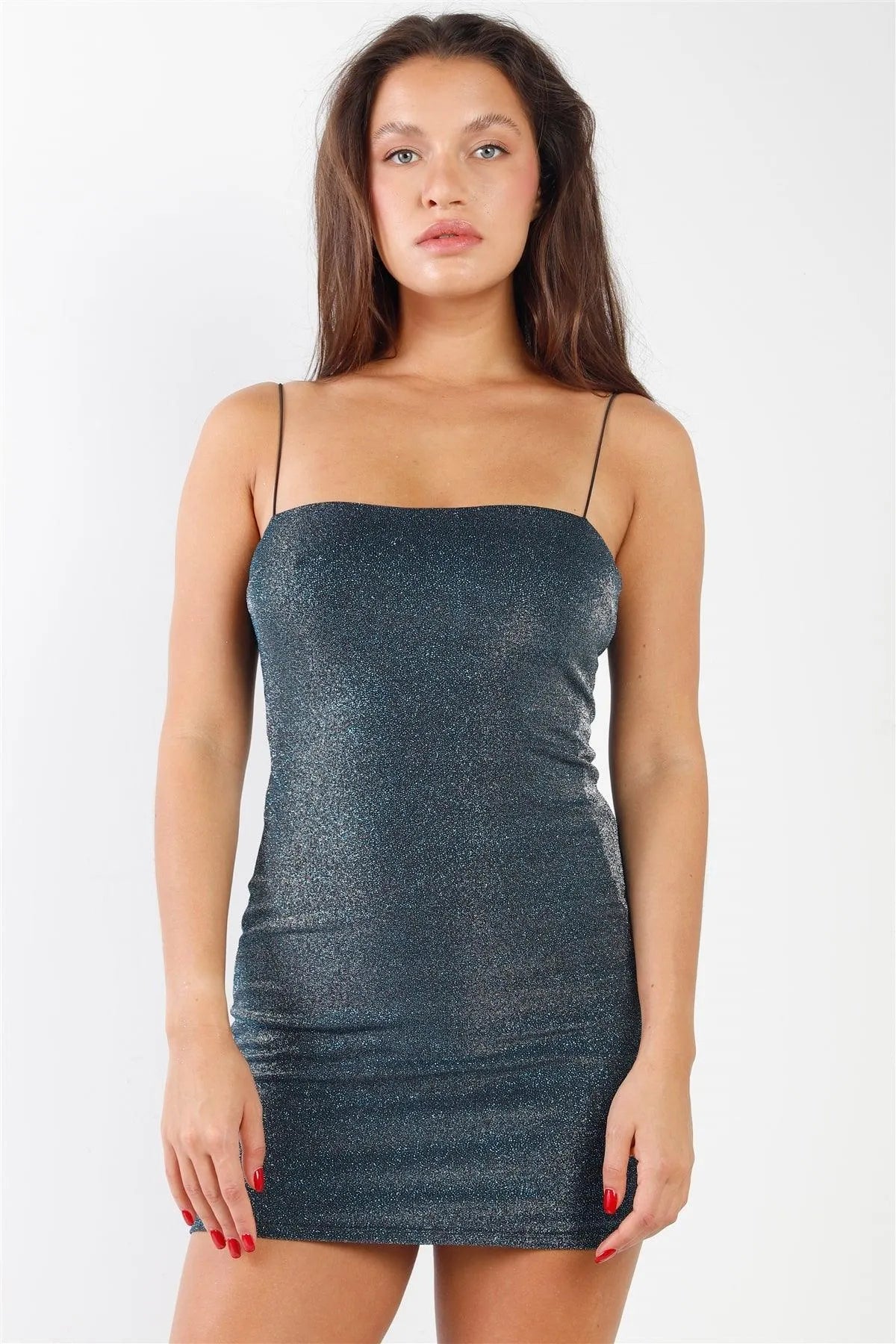 🖤 Item Features: Teal, sparkly metallic silver & black fabric, sleeveless square neckline, spaghetti straps, mini length, stretchy, non-sheer, lined, no closure, slim fit, sexy, elegant, hot, shiny, chic, perfect night out look