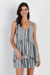 Teal & Taupe Paisley Print Flare Hem Sleeveless Top /1-2-2