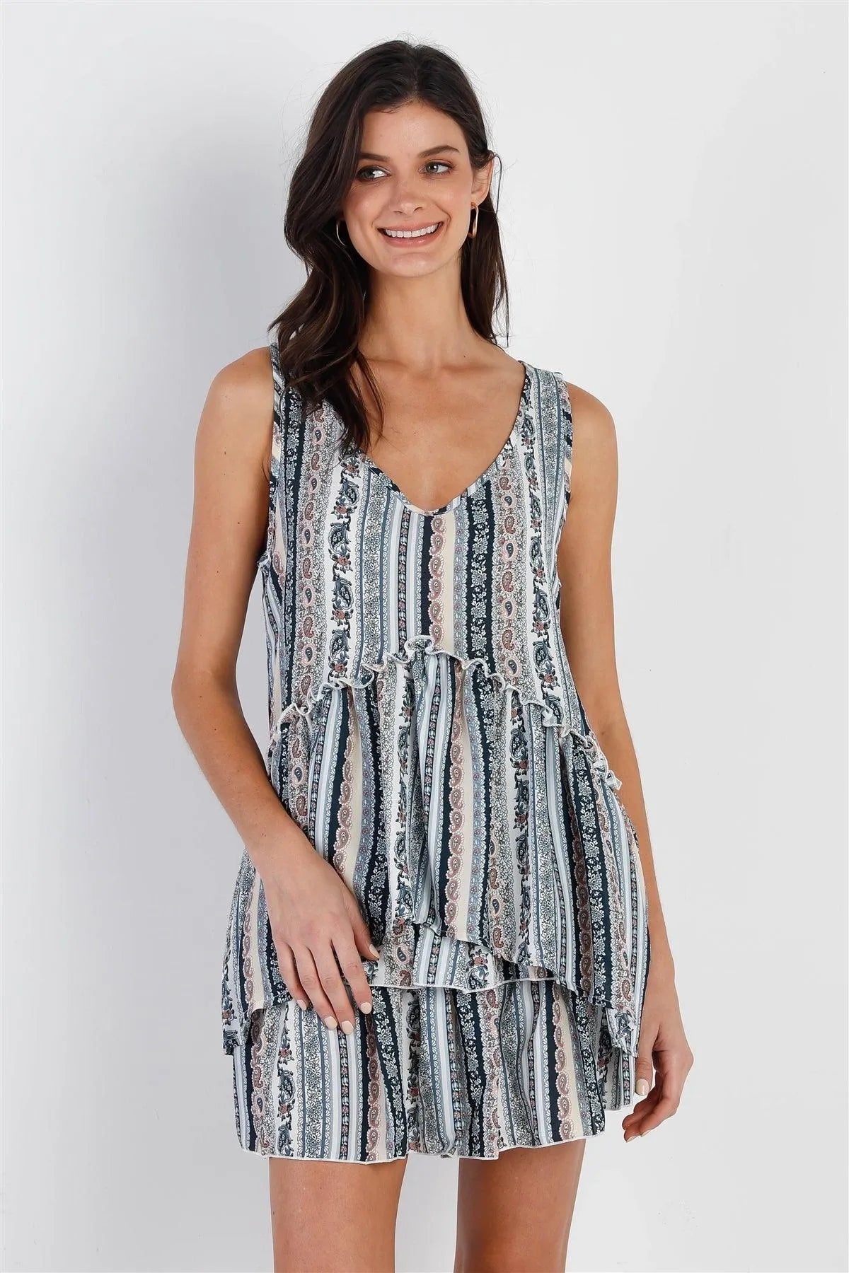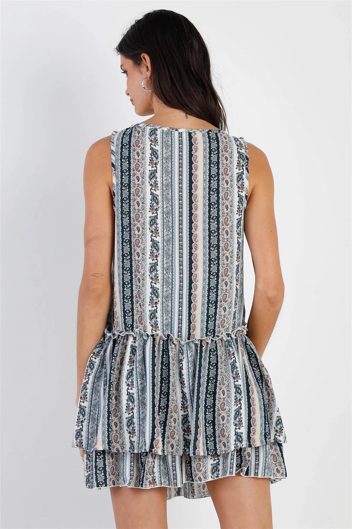 🖤 Item features: Teal & taupe, paisley print, flare hem, v-neckline, sleeveless, relaxed fit, non-sheer, unlined, non-stretchy, casual, cute, girlish, trendy, stylish, spring/summer collection