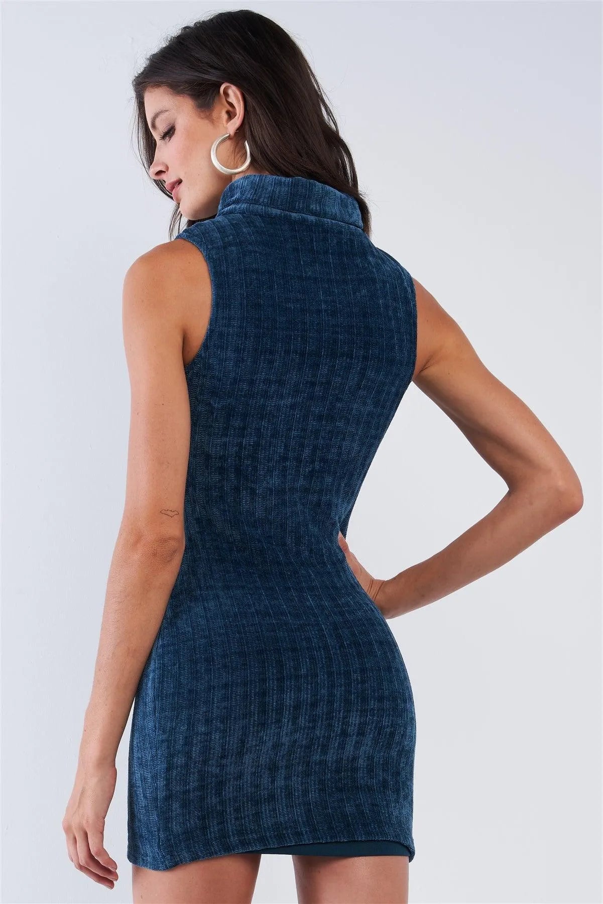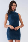 Teal Velvet Tunic Turtle Neck Sleeveless Knitted Dress /2-1-1