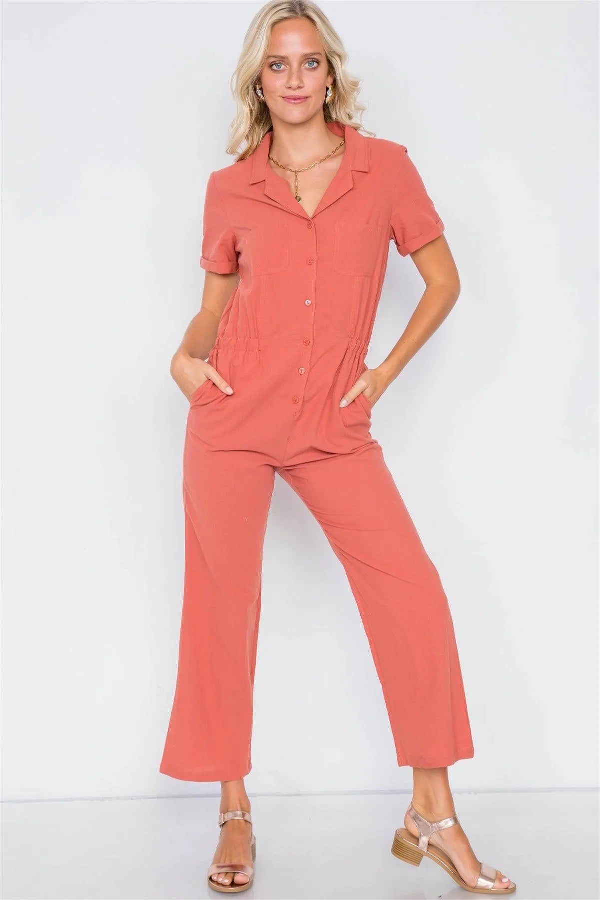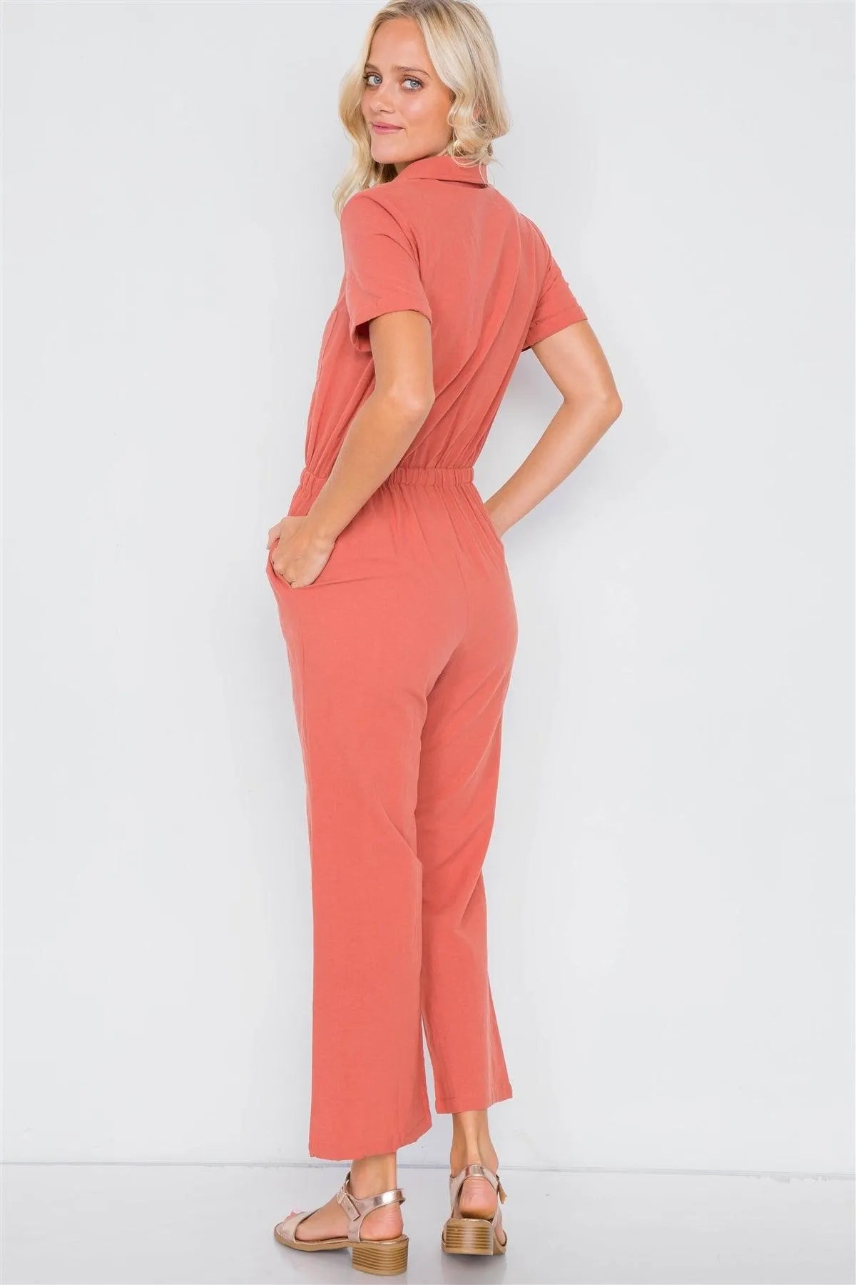 Terracota V-Neck Cuffed Short Sleeve Ankle Leg Jumpsuit /3-2-1
