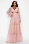 Lace Tiered Ruffle Bell Sleeve Maxi Dress - Romantic Cutout Bohemian Design
