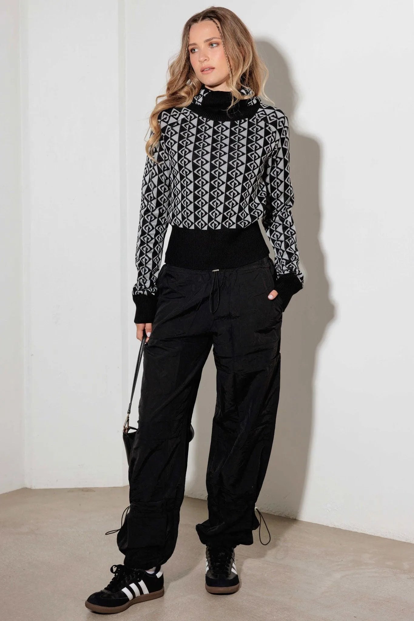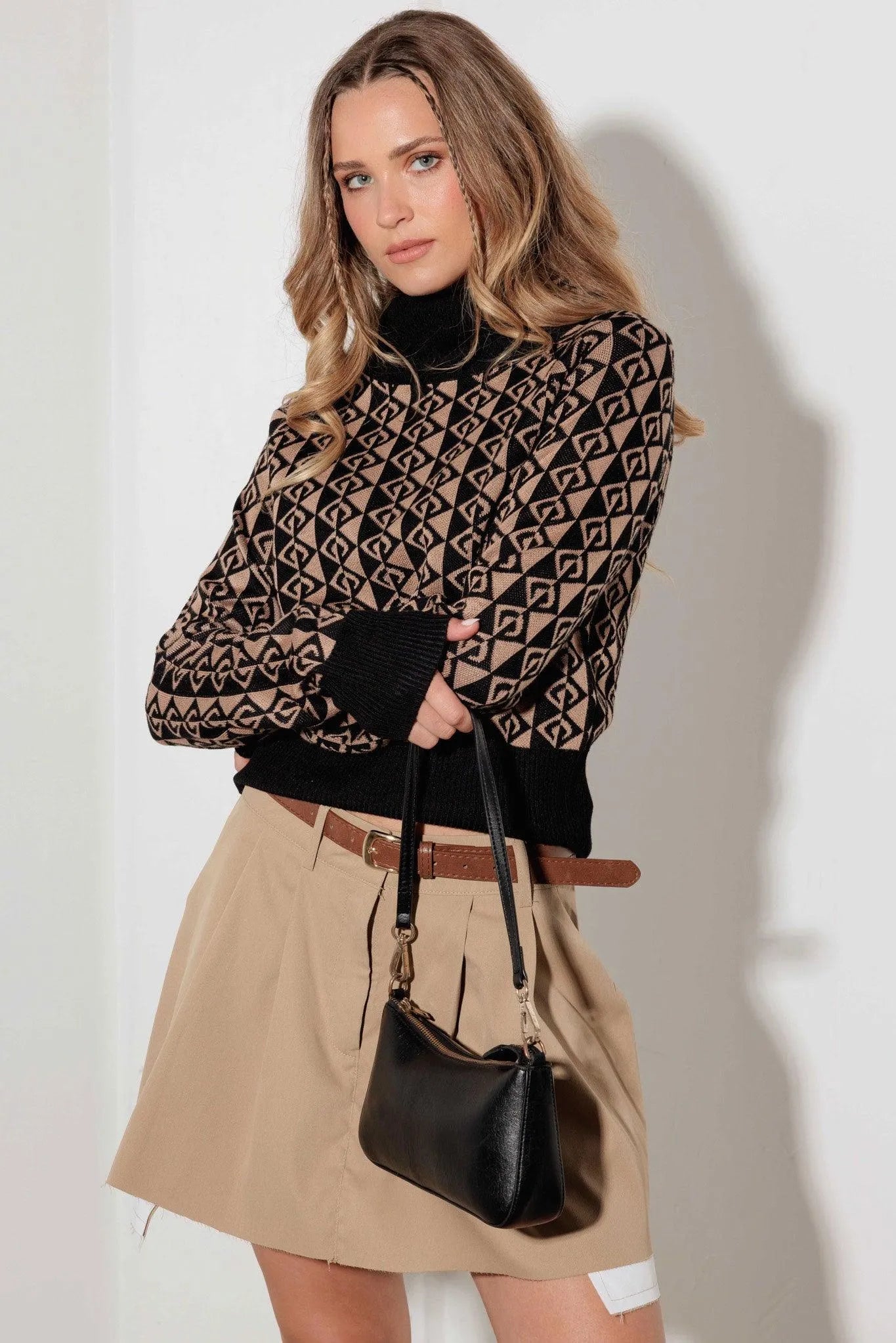 Women sweater, all over monogram print, turtle neck, hooded, balaclava, long sleeve, soft, mid weight, cozzy, chic, cool, must have!