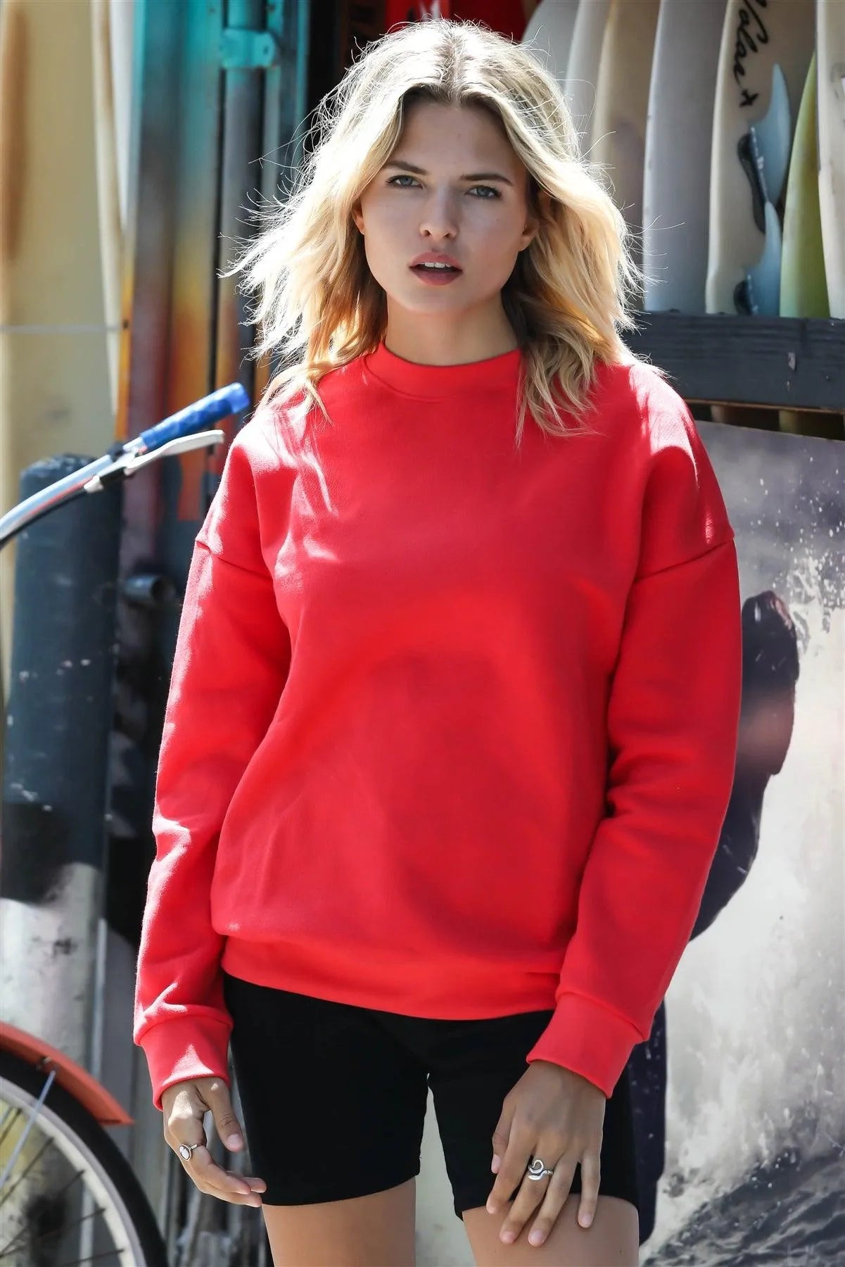 🖤 Item Features: Tomato, solid color, cotton material, crew neckline, long cuffed sleeves, dropped shoulders, cuffed hem, brushed lining, non-stretchy, not see through, casual, cute, everyday look, warm, cozy, stylish, must have