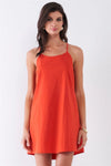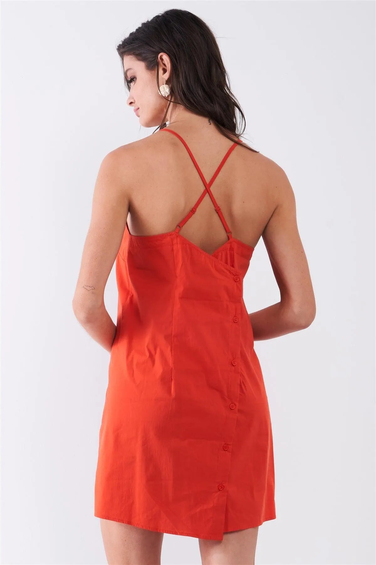 Tomato Red Sleeveless U-Neck Back Botton Down Detail Criss-Cross Straps Mini Dress /1-2-2-1