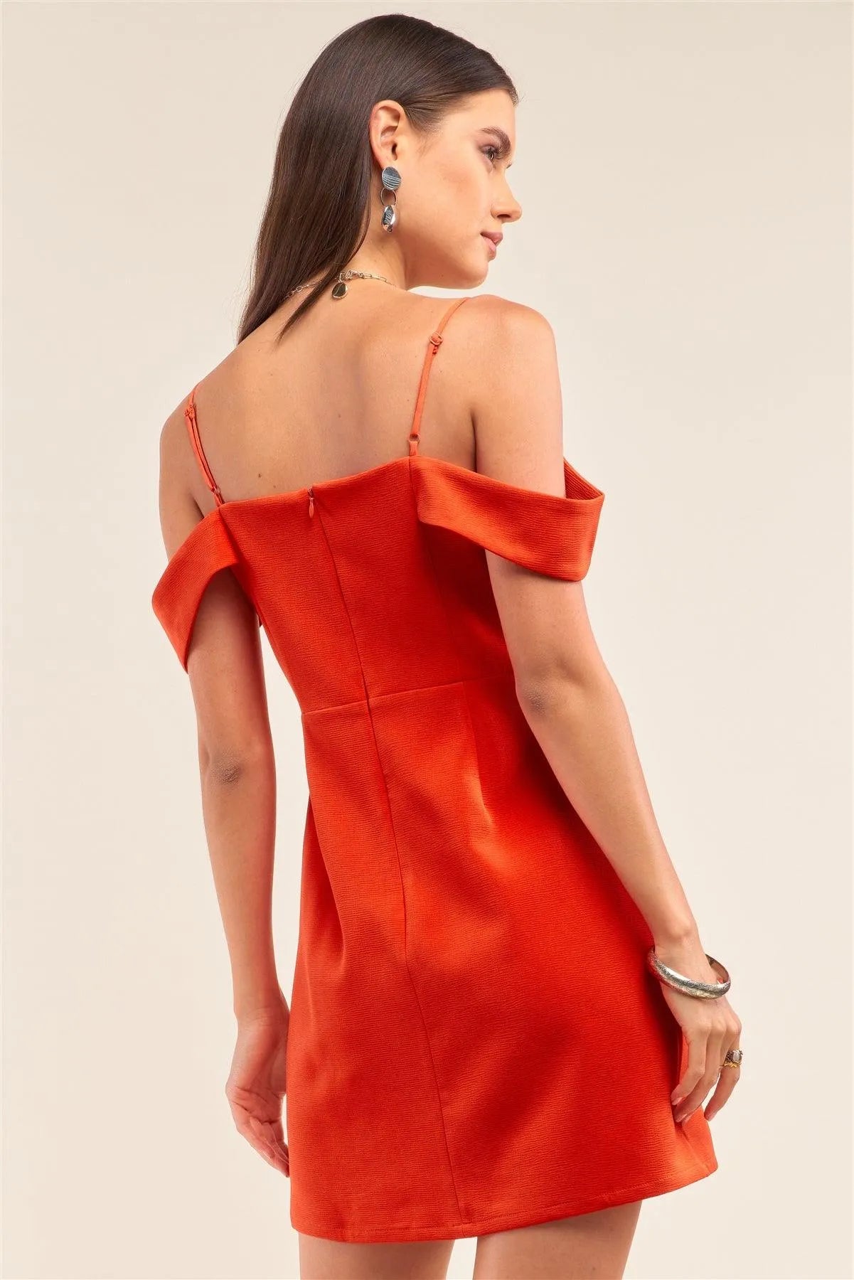 🖤 Item Features: Solid tomato red, off the shoulder, sweetheart neck, adjustable spaghetti straps, hidden back zipper detail, bodycon fitting, lined, non-stretch, mini length, casual, cocktail party & club wear, night out, date night, spring/summer season