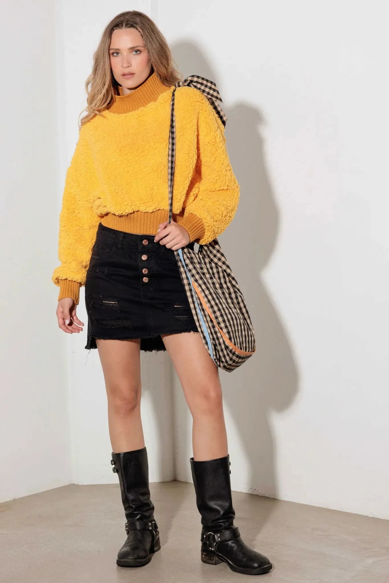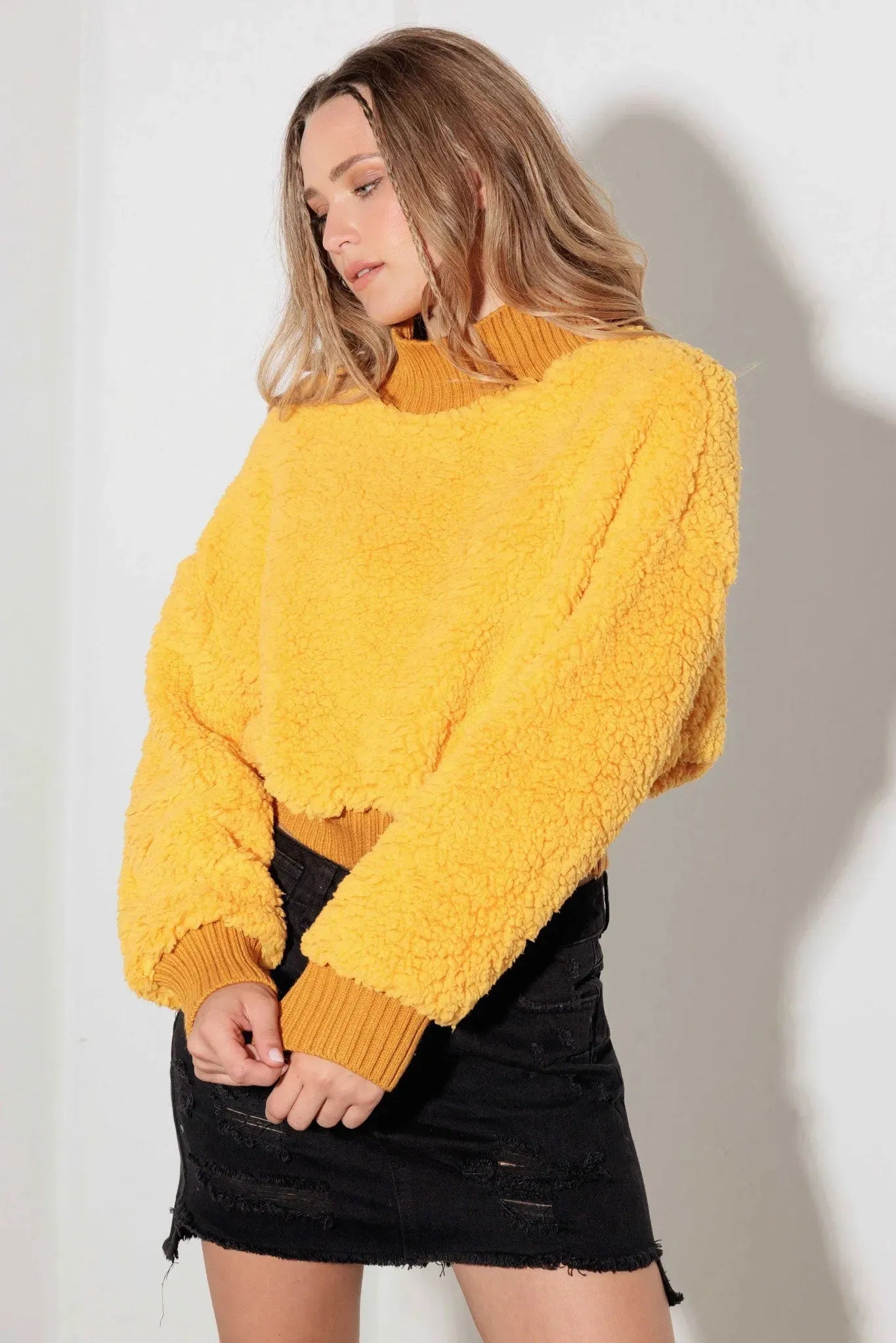 Fuzzy Ribbed Mock Neck Turtle Neck Teddy Crop Sweater