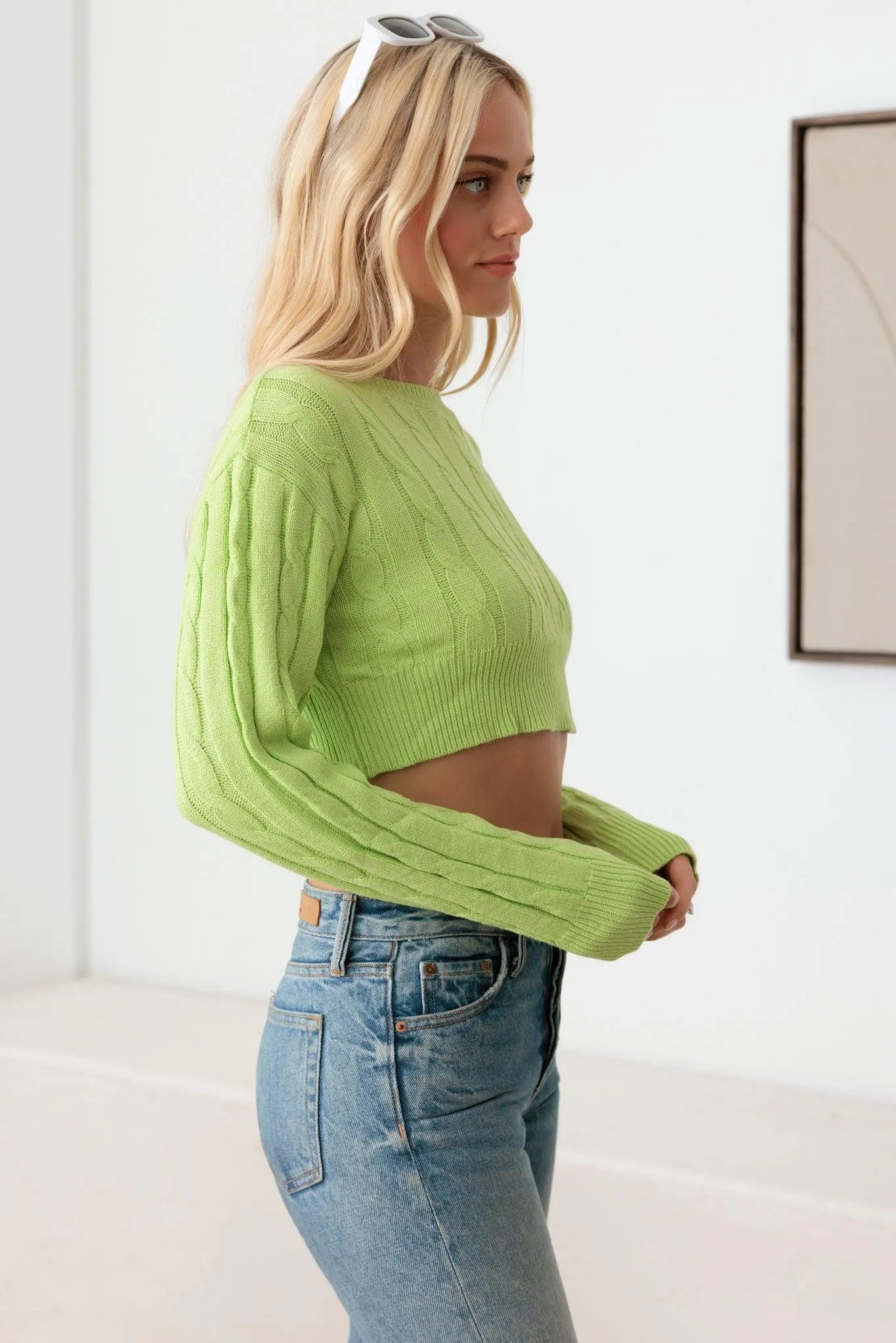 🖤 Get cozy in our Cable Pattern Long Sleeve Crop Sweater! This quirky and playful top features a unique cable pattern and a crop length, perfect for pairing with high-waisted bottoms. Stay warm and stylish with this trendy piece!