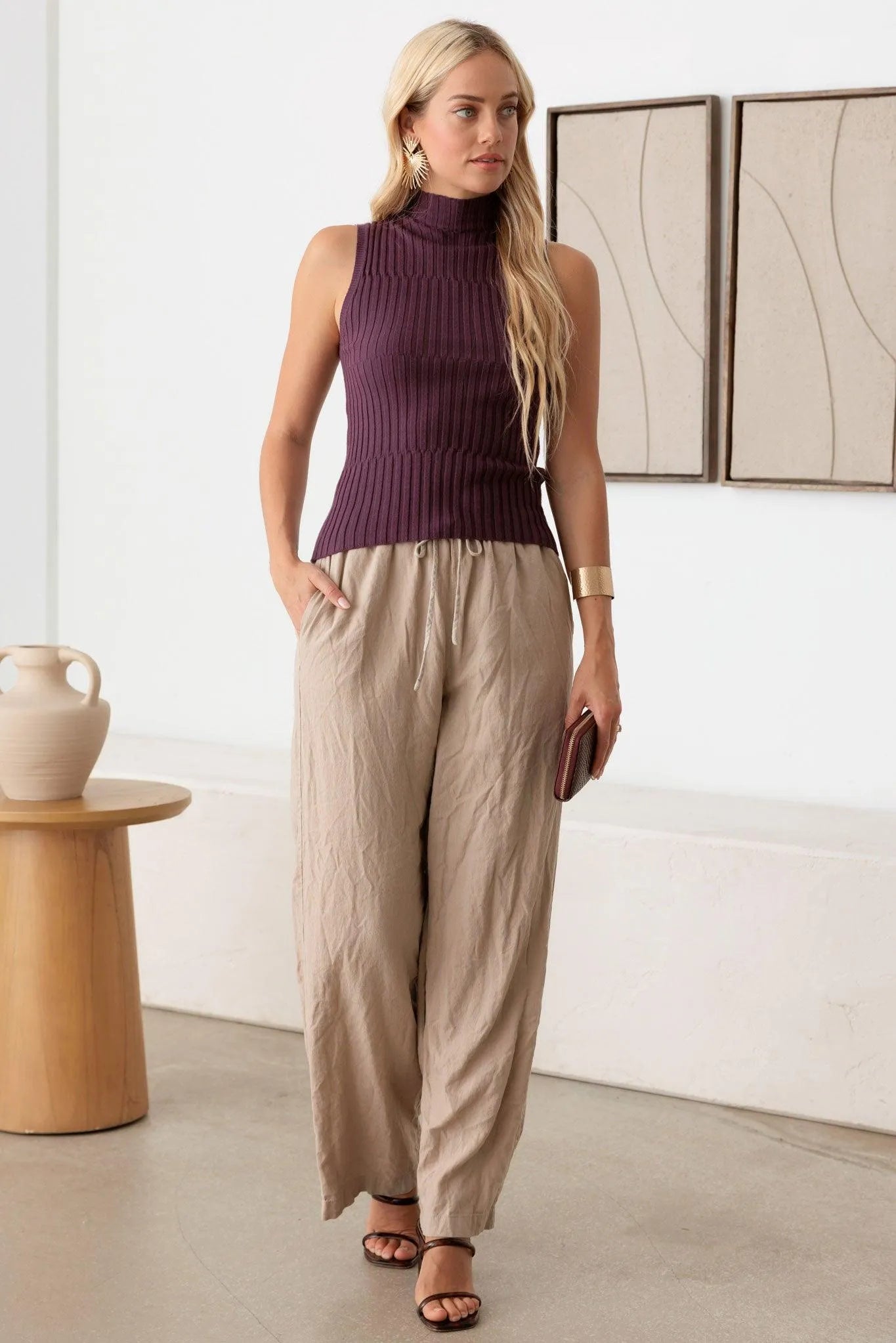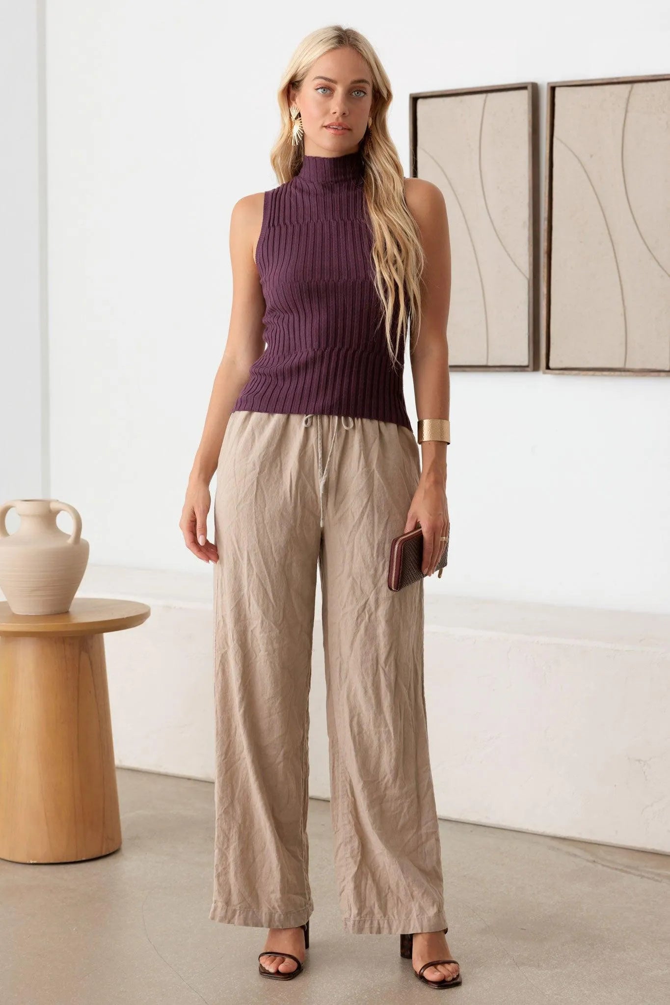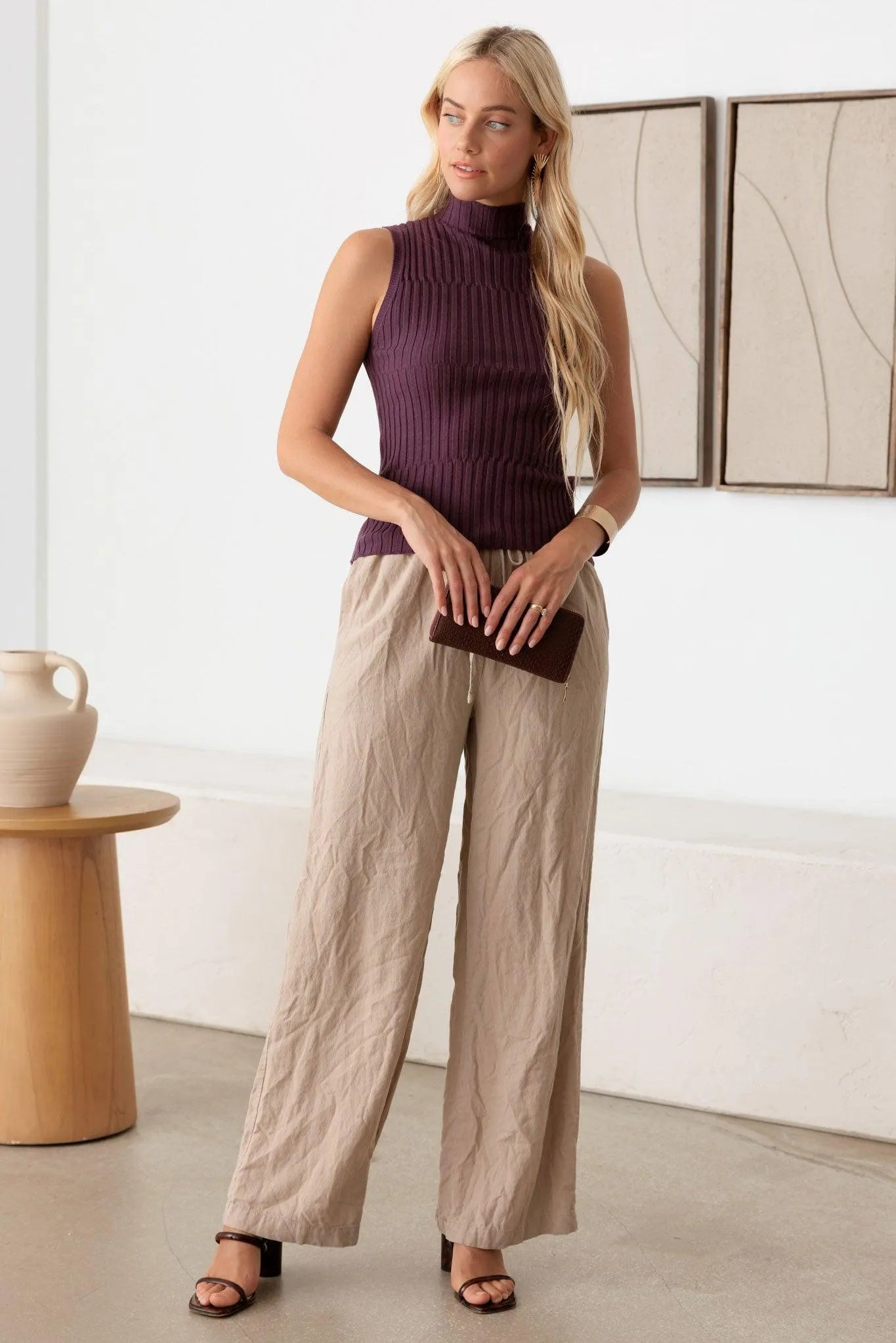 Oatmeal Wide Leg Knit Lounge Comfortable Elastic Waist PantsVendor:White Birch