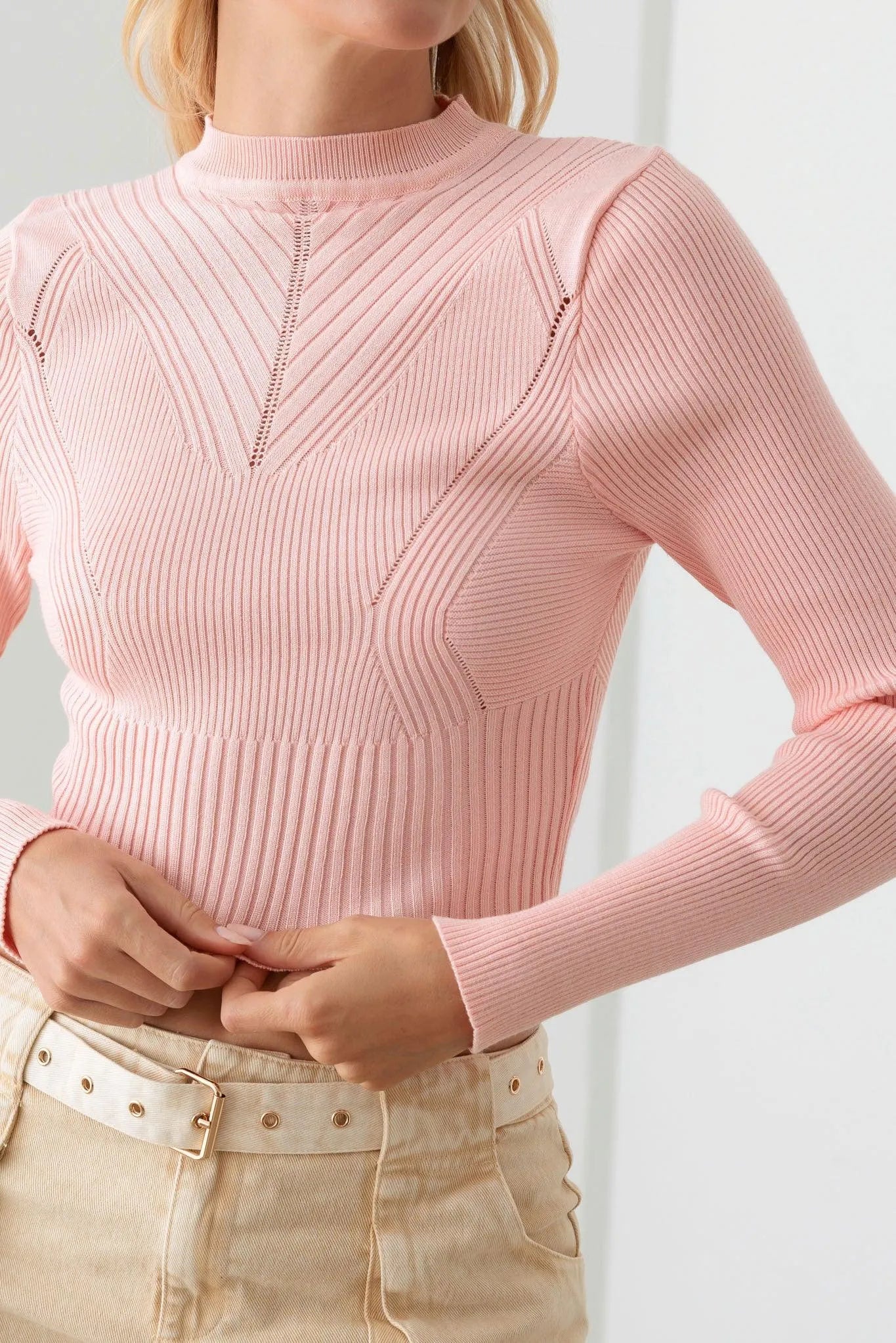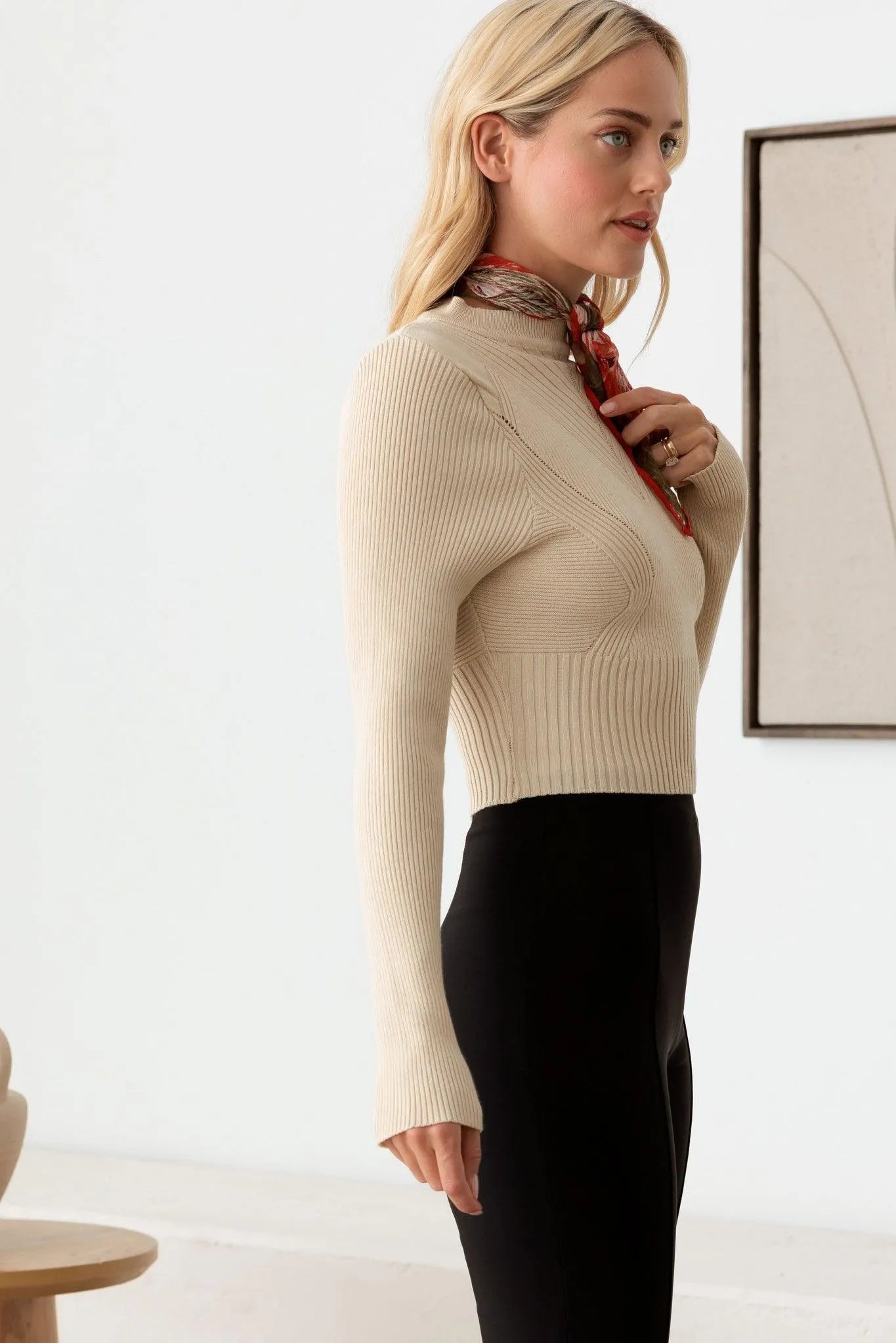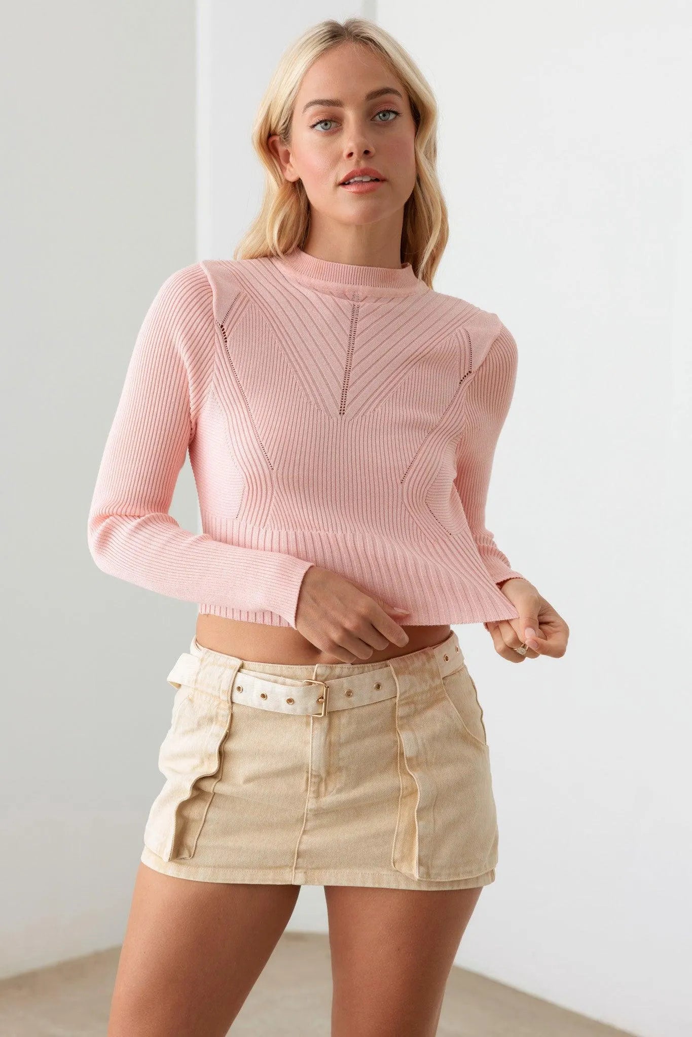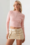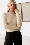 Ribbed Long Sleeve Seamless Knit Fitted Crop Top