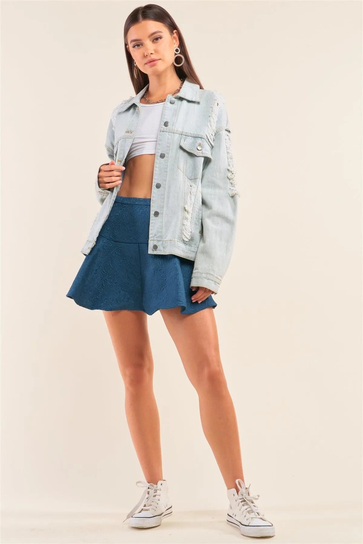 Dark Turquoise High Waisted Brocade Embroidered Flare Mini Skirt /2-2-2