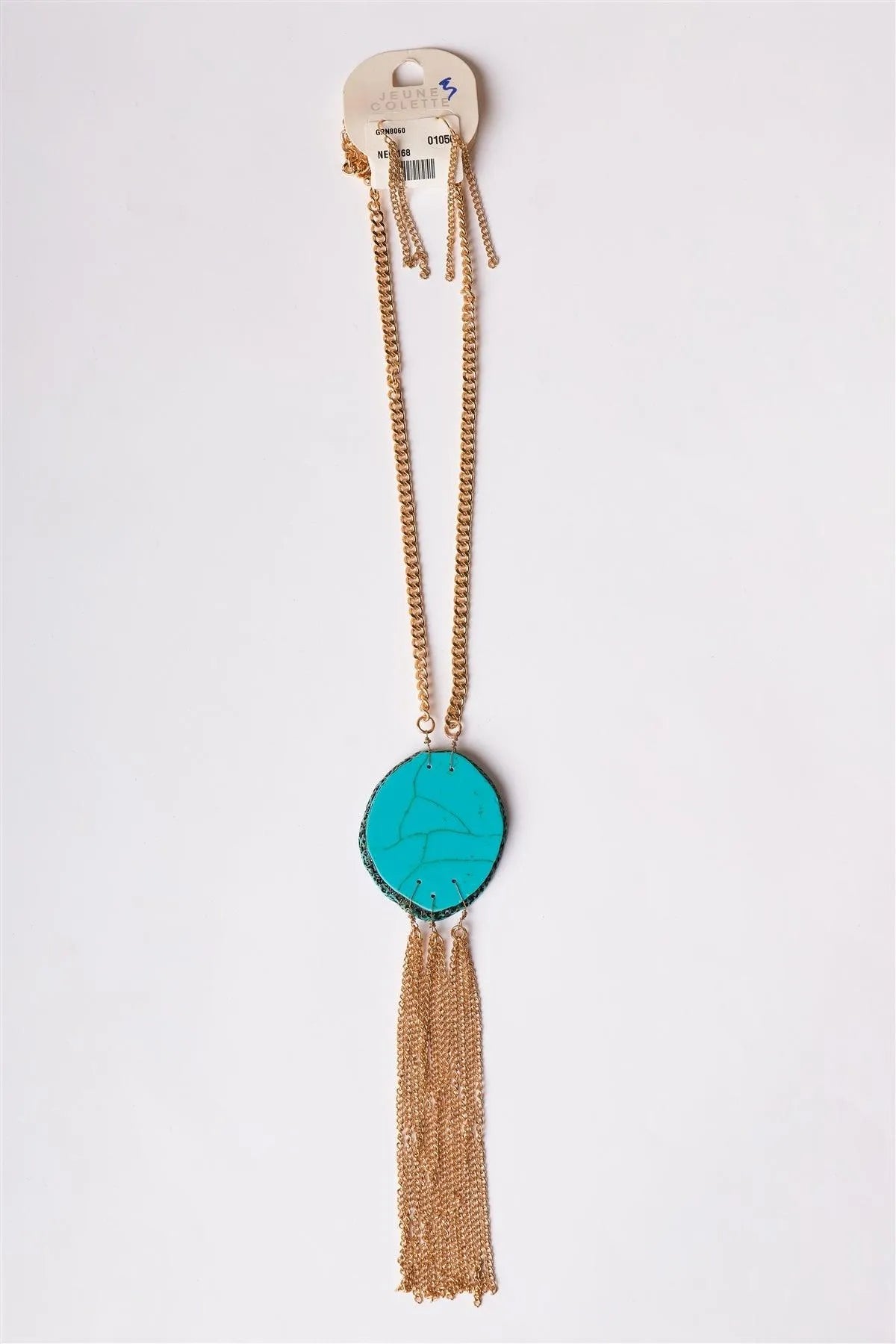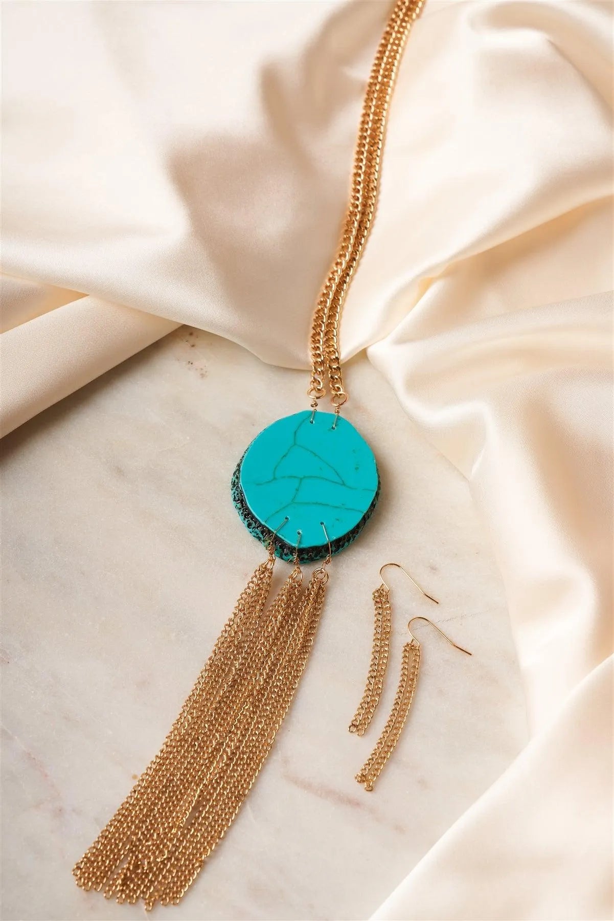 Turquoise Stone Metallic Tassel Necklace & Earrings Set /5 Sets