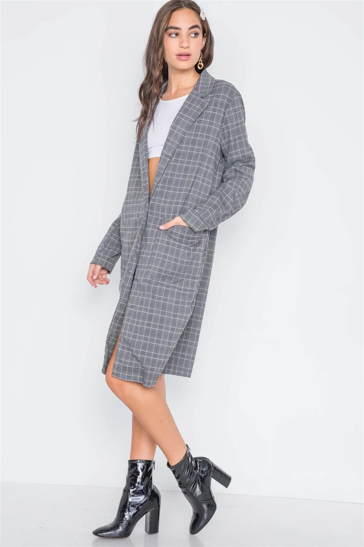 Blazer features: notched collar, single front button closure, long sleeves, front patch pockets, unlinedModel is 5'9 wearing a size Small (Waist: 24", Bust: 32A, Hips: 34")Size Small Item Measurements: Length: 42", Bust: 44", Sleeves: 25" True to size